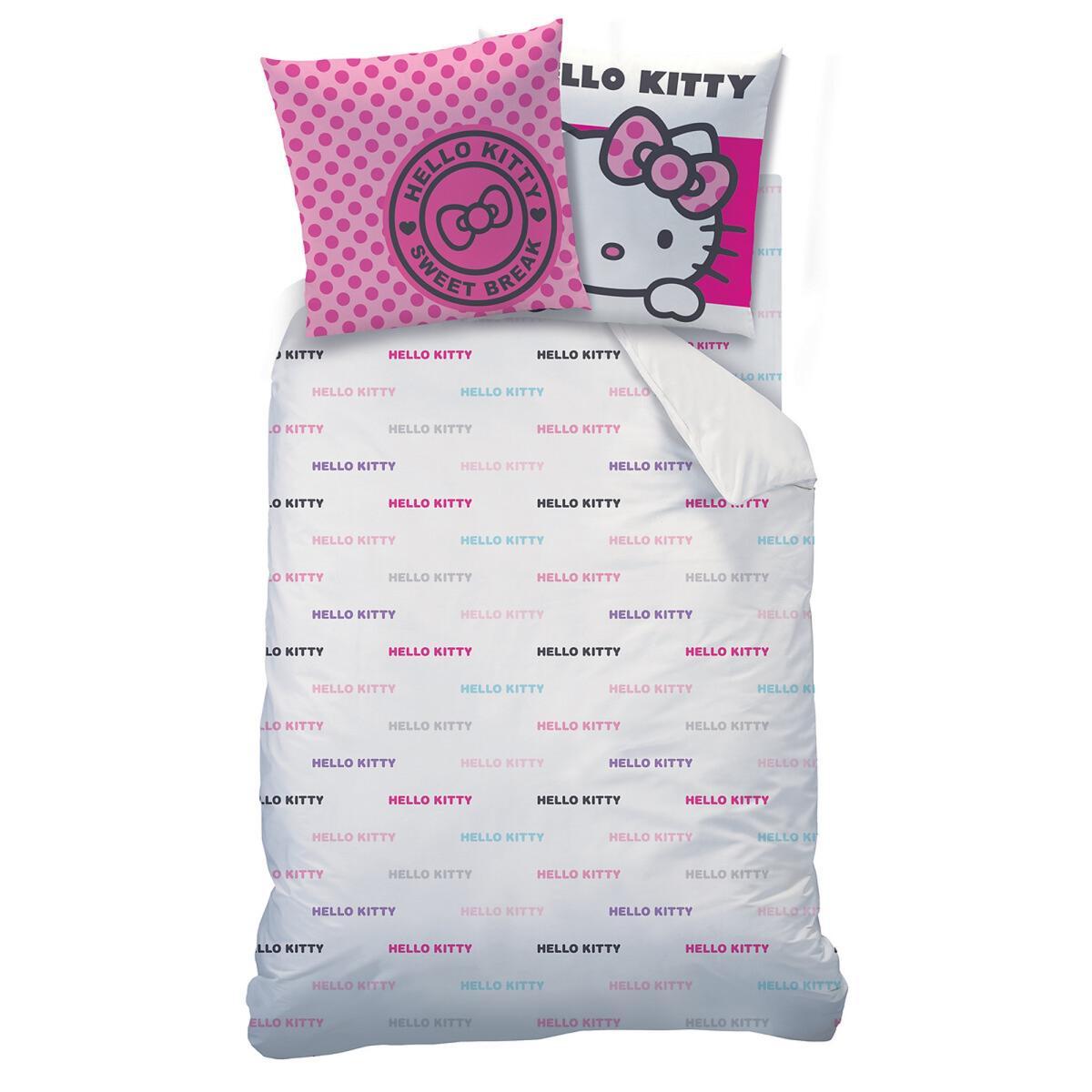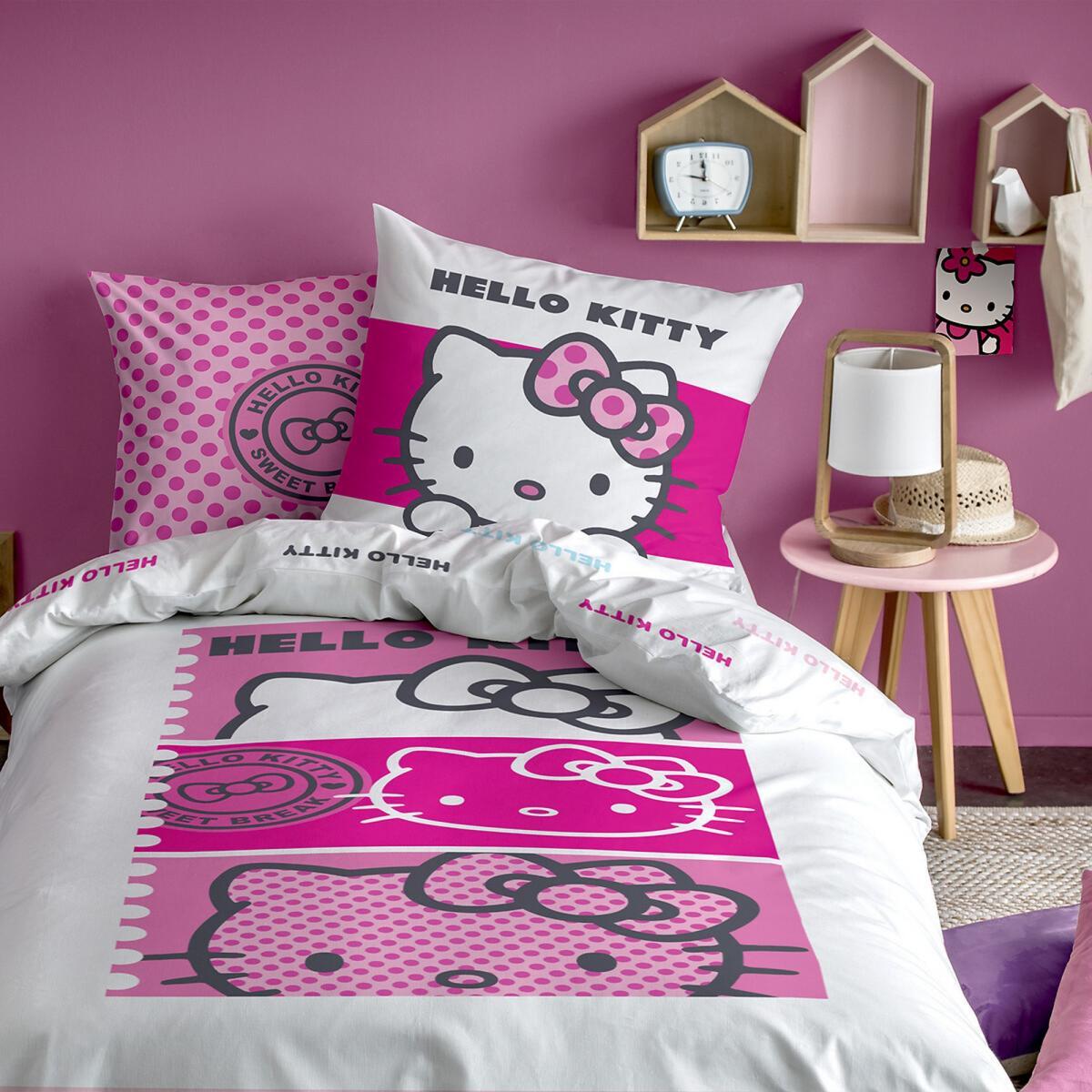 Surprise your little one with this cute bedding set. Adorable bed linen created for fans of the famous kitten! The Hello Kitty Eva pink set includes 1 reversible duvet cover and 1 square pillowcase.