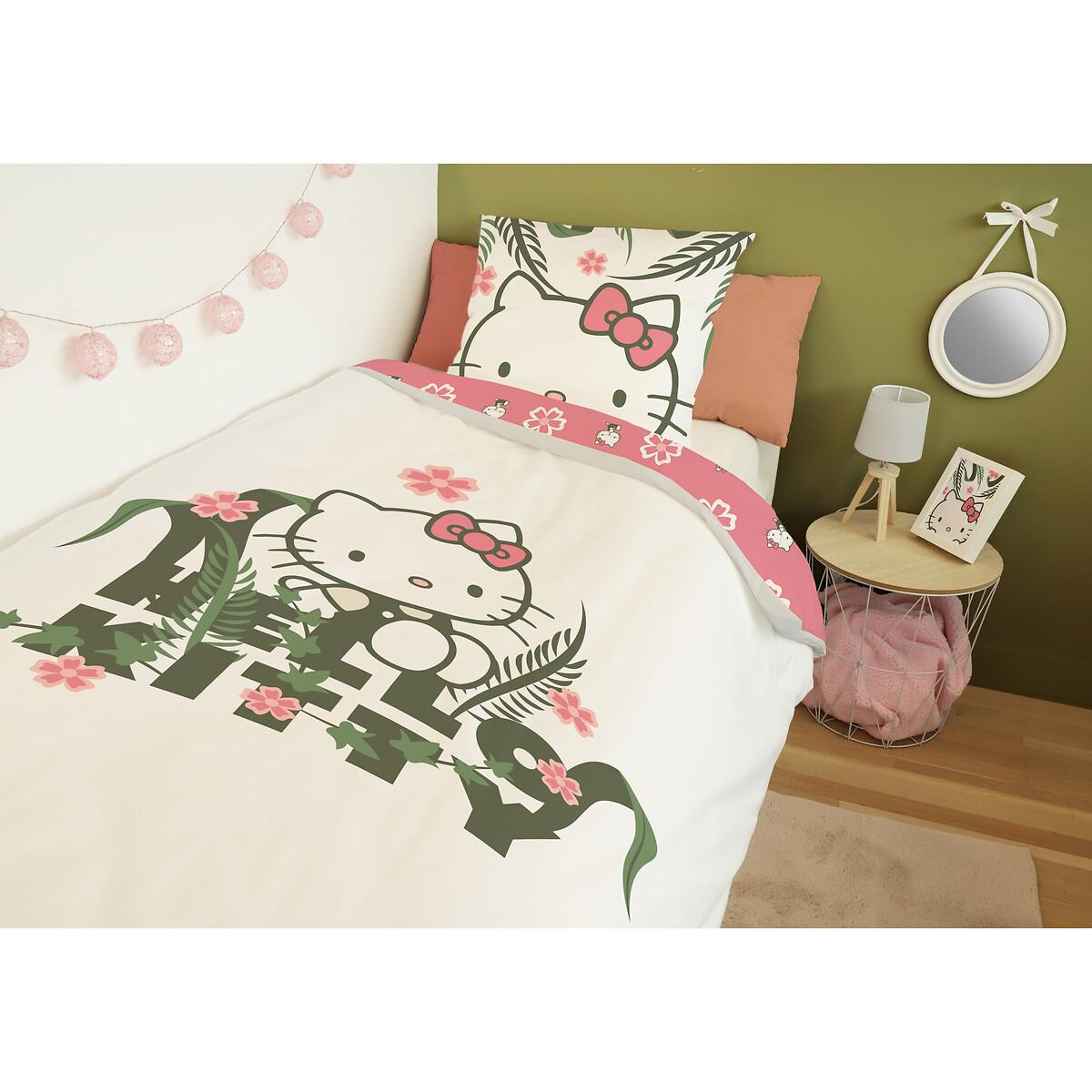 Immerse yourself in the world of Hello Kitty with this cotton bed set consisting of a single duvet cover and a square pillowcase. Cotton is part of our daily lives. We love it for its suppleness and softness. Easy Care, it is ideal for the beds of young and old alike!Product Details • 100% cotton • 144 thread count • Duvet cover with Hello Kitty Spring printed on the front and micro-patterns printed on the reverse • Double-sided printed pillowcase • Straight buttoned hem Match this item with the rest of the bedding in the range for a stylish bedroom. And you can mix and match it with different colours and styles from our other bedding ranges when you want to change things up and create your own unique look. Care Advice • Machine washable at 40°C • By washing your laundry at 40°C instead of 60°C, you limit energy consumption. Sizes • Pillowcase : 65 x 65cm • Duvet cover : 140 x 200cm • OEKO-TEX® Standard 100. Standard 100 certification by OEKO-TEX® tests textile products for harmful substances via an independent, international label.