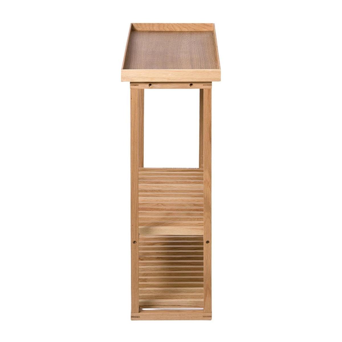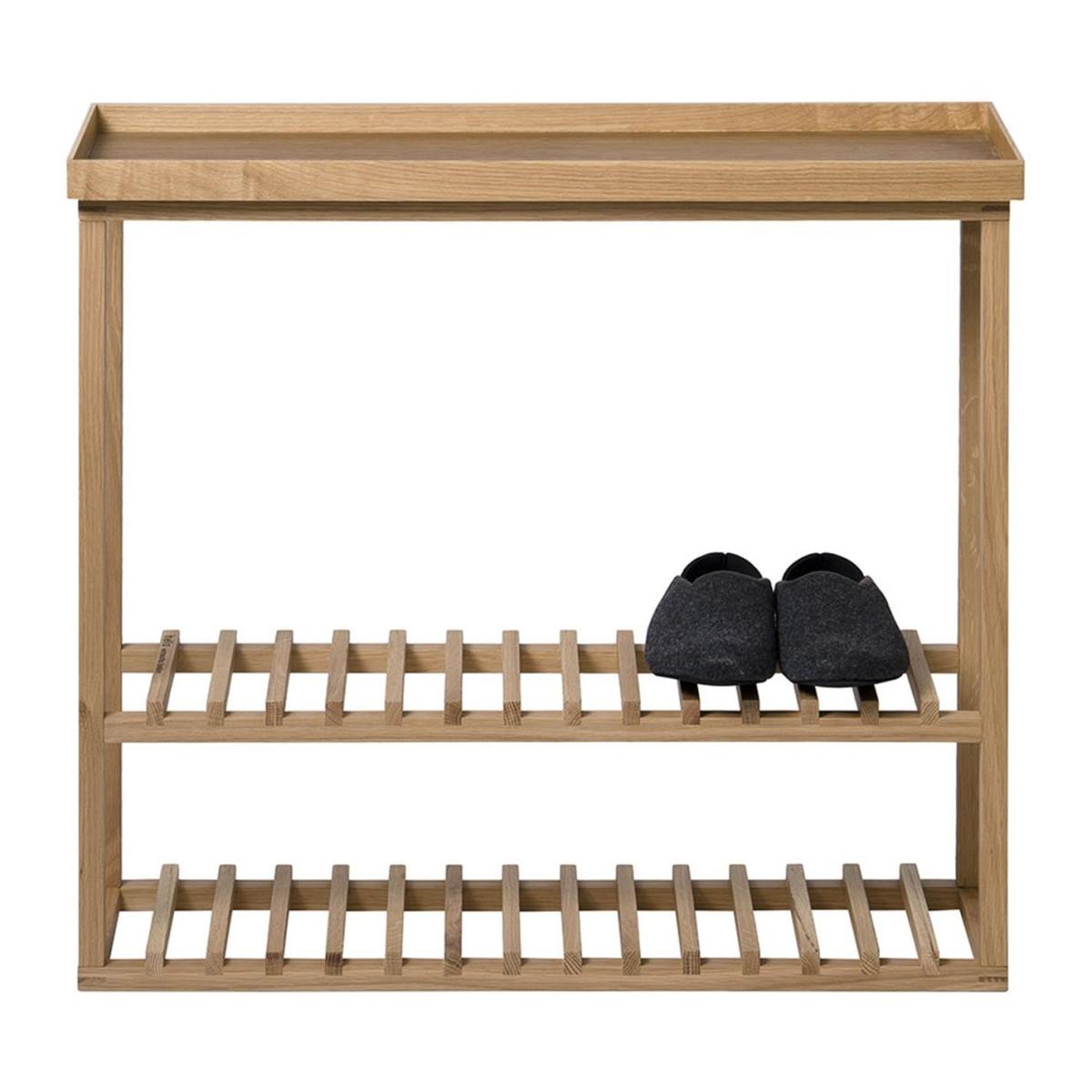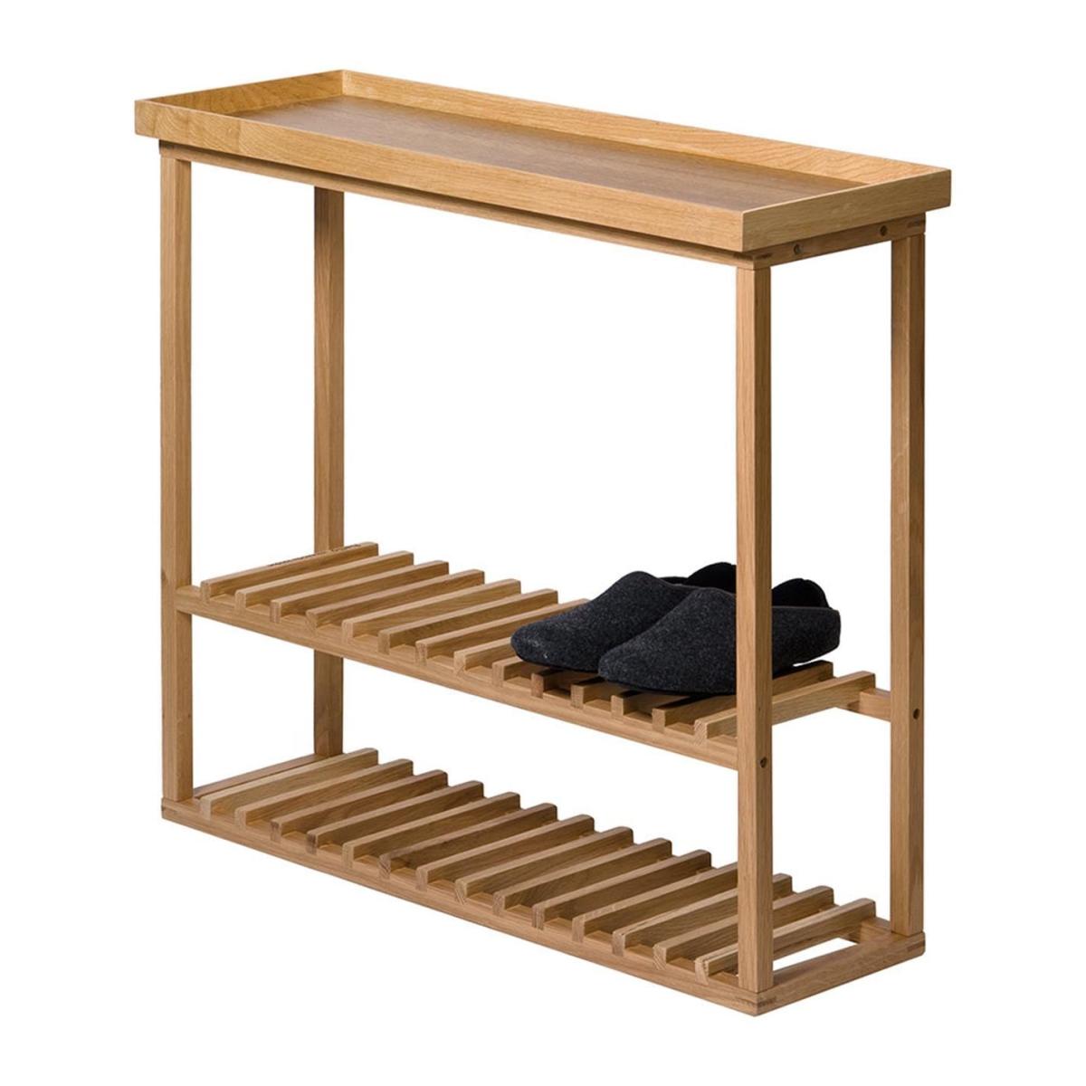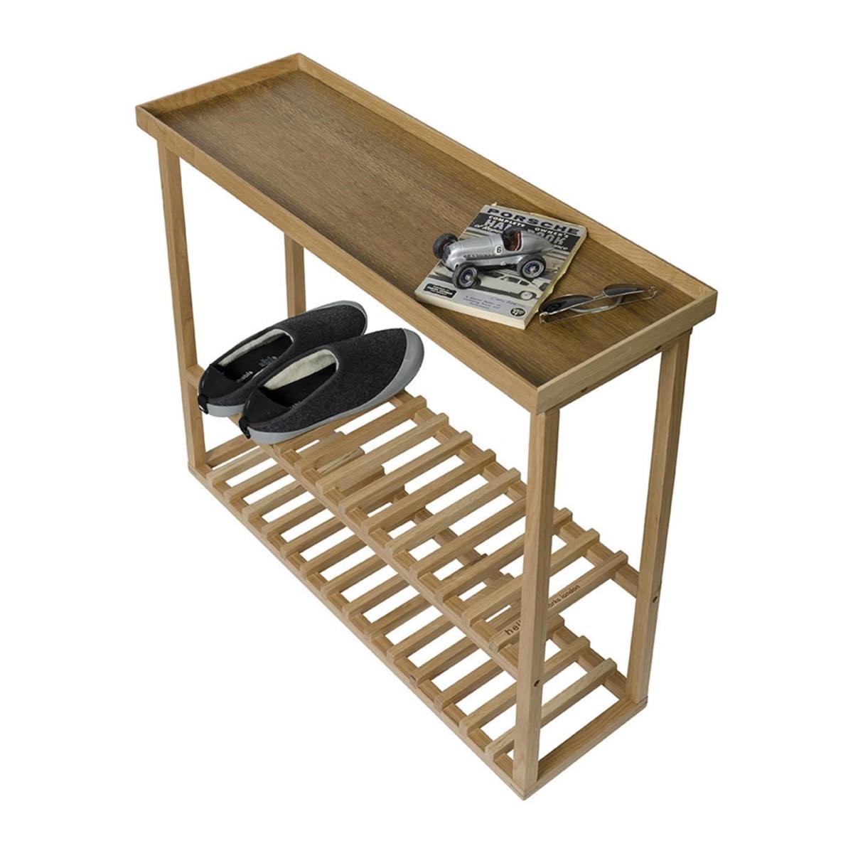 Say hello to this hallway must-have from Wireworks. Made from sustainably sourced American oak, this three-tiered storage table has plenty of space for footwear and a tray table for keys, letters or decorative treasures. Sitting flush against a wall, the slim design is ideal for any entranceway.