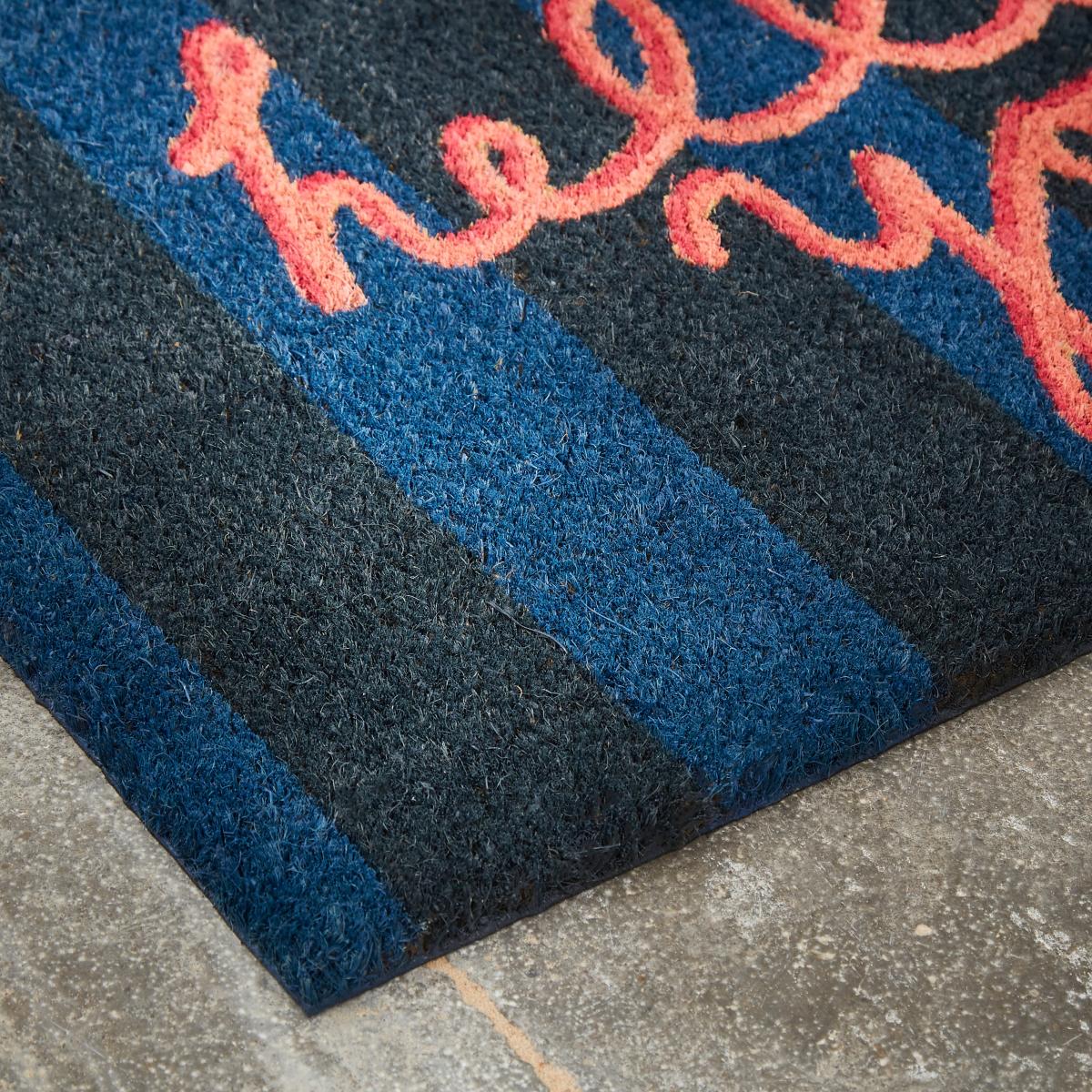 I love this doormat for its cheerful colour palette and practical design. The blue hues with the pink Hello script make it a lively addition that works especially well in coastal, modern, or Scandinavian-inspired interiors. It’s a versatile piece that can add a pop of colour to neutral schemes or complement existing blue accents. Practical styling tips include pairing it with sleek door hardware or minimalistic planters nearby to keep the look rooted and effortless. Its durable coir surface is also ideal for scrapping dirt off shoes, making it as functional as it is attractive-perfect for welcoming guests with style.