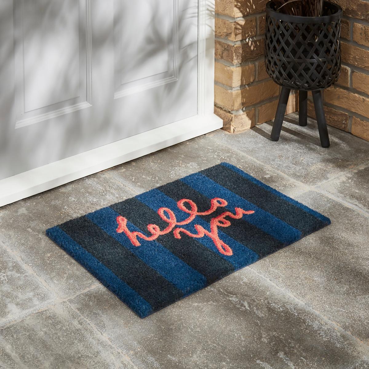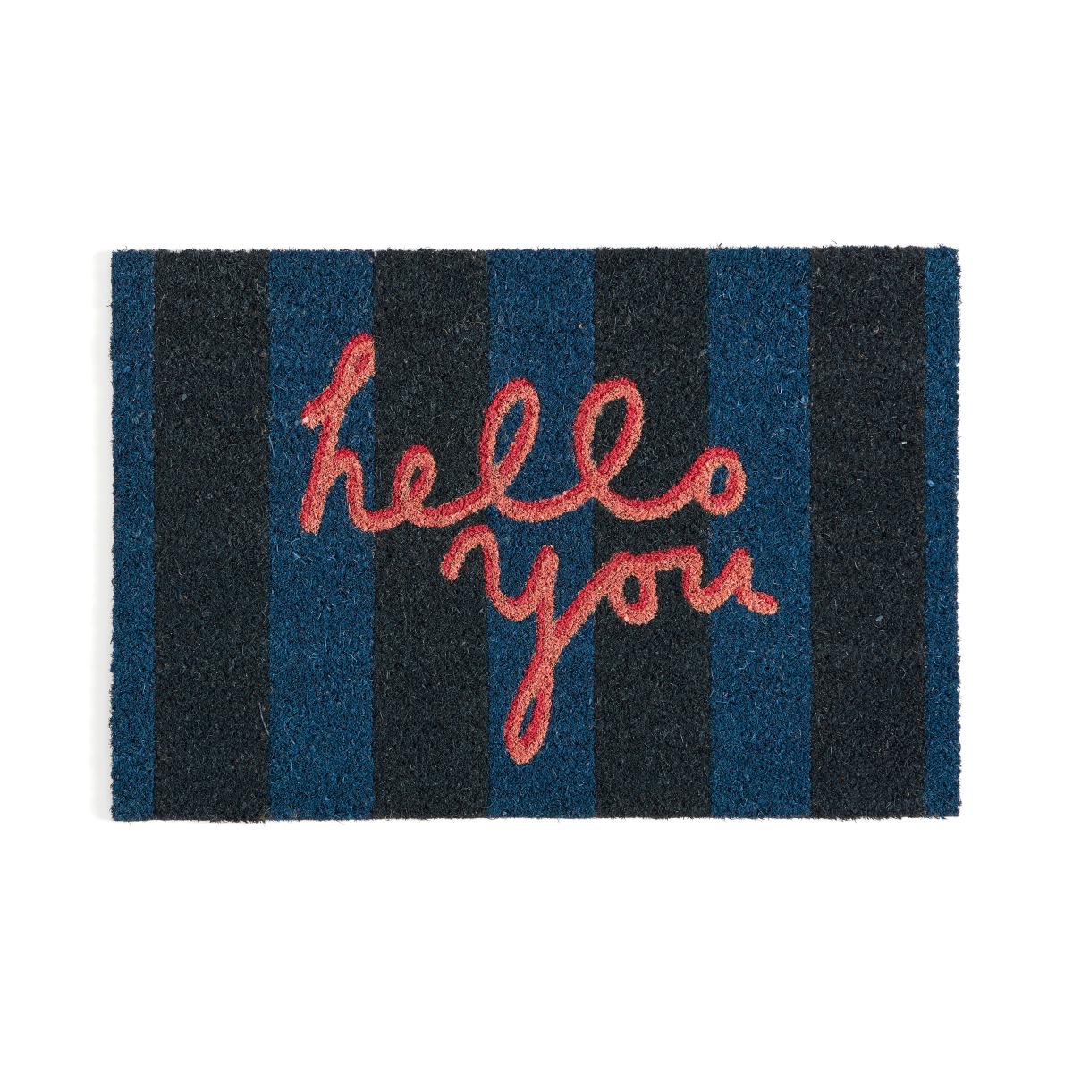 Hello You Coir Doormat Blue