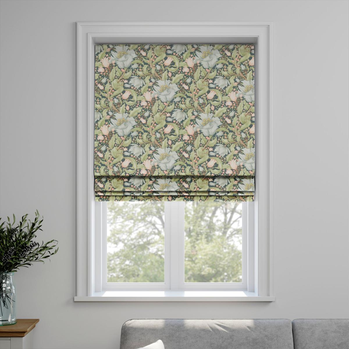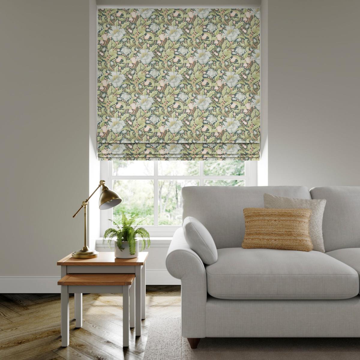 The Helmshore fabric features an eye-catching floral design perfect for that wow-factor in any home. Choosing your lining: Choosing your fitting type:; Choosing which side you’d like the operating chain: Need help deciding or measuring? Book a free appointment with one of our consultants! Child Safety: We add clips to the back of our roman blinds to attach the cords to the fabric. They also double up as a child safety feature. If pressure is exerted the clips will detach to prevent the risk of strangulation. Please read our Blinds Safety Guide for more information. If the clips detach accidentally during normal use, they can be easily re-clipped back into place.