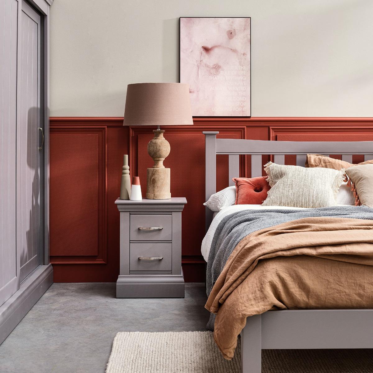 I love this little bedside table for its clean, timeless design and versatile grey finish, making it a great addition to both contemporary and traditional interiors. It works well in bedrooms with neutral palettes, but can also add a soft contrast to darker or more colourful schemes. Practical styling tips include stacking small decorative boxes or books on top, and keeping the drawers tidy with simple organisers. Its manageable size makes it ideal for compact spaces, while the two drawers provide handy storage for essentials like extra chargers, reading glasses, or skincare. Overall, it’s a functional yet stylish piece that offers effortless elegance without overwhelming the room.