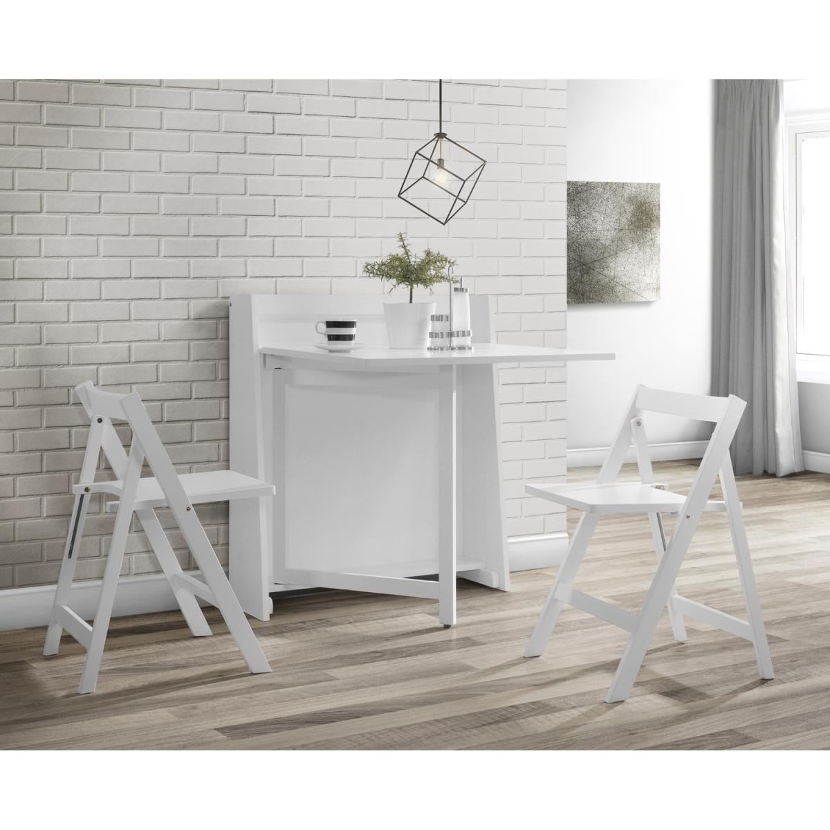 The Helsinki Dining Set combines a cool modern style in a choice of a white or light grey finish, perfect for a wide range of decor. This space-saving compact dining set neatly folds away, with the two collapsible chairs storing inside. When not in use, this dining set can be used as an additional shelf. Perfect for smaller dining areas.