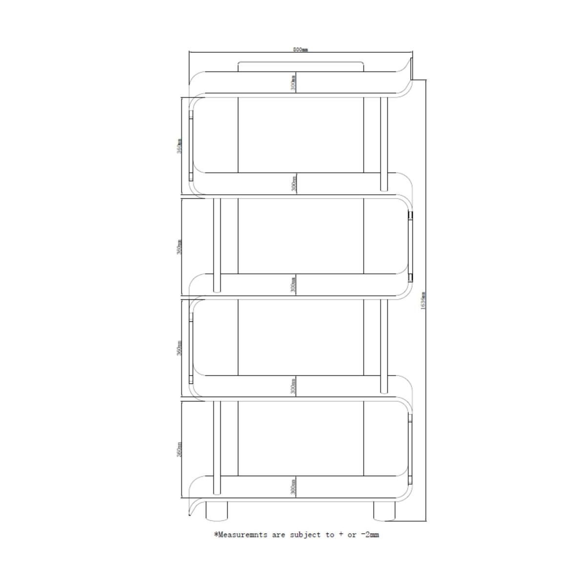 * Stylish Curved Design* 5 Display Shelves* Polished Chrome Supports & Feet* Real Wood Veneer The Helsinki Tall Bookshelf boasts a sleek curved design with five display shelves and polished chrome supports. Its real wood veneer finish adds a touch of sophistication to any space.