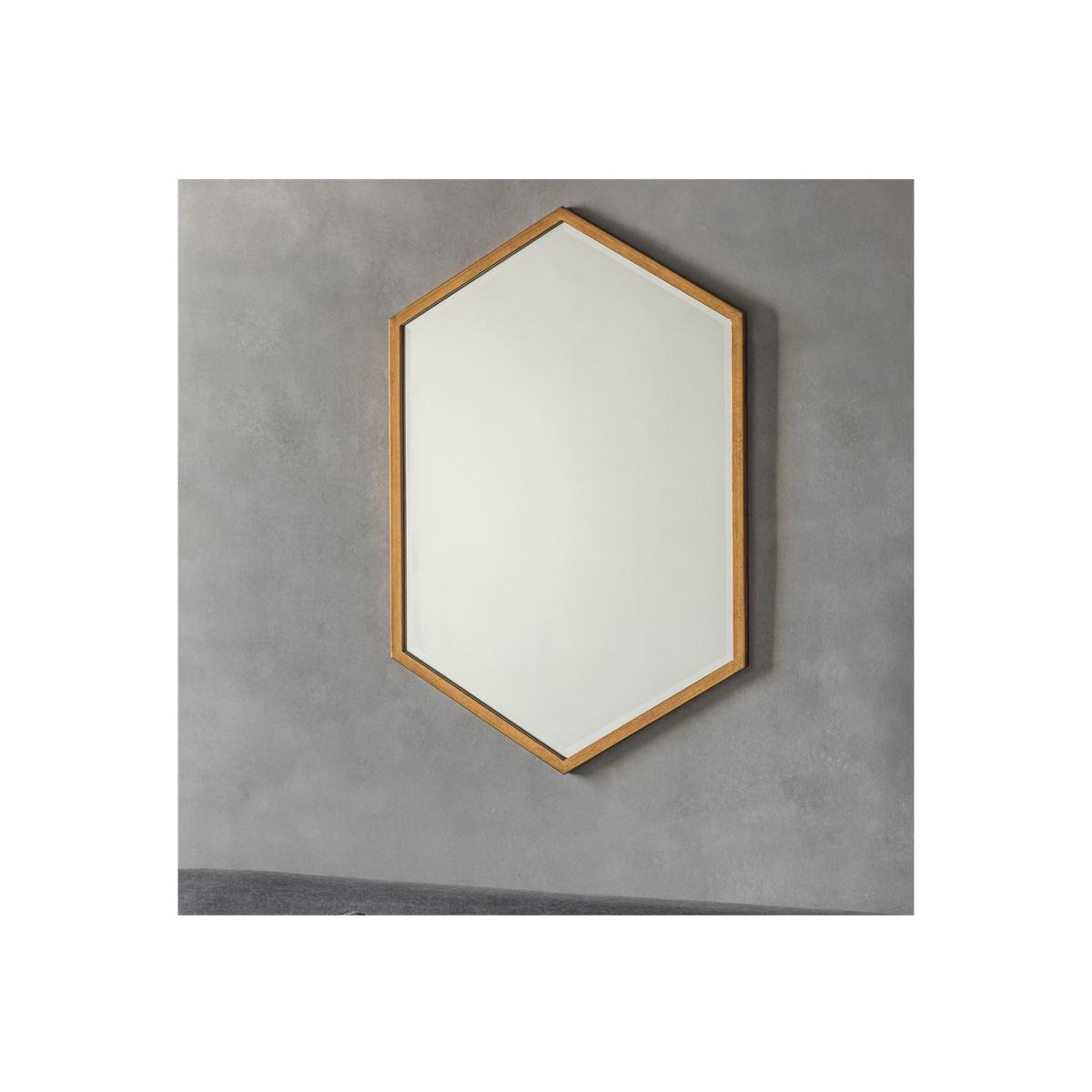 I love this gold mirror for its sleek, contemporary take on classic design. The hexagonal shape brings a modern twist that works well in both minimalist and eclectic interiors. It's particularly versatile - it can be styled above a console for added depth or used in a bathroom to bring a touch of warmth and sophistication. Practical tips include pairing it with warm-toned lighting to accentuate the gold finish or positioning it opposite a window to reflect natural light and open up the space. Its clean lines and subtle glamour make it a good fit for living rooms, hallways, or bedrooms where you want to add visual interest without overwhelming the surroundings.