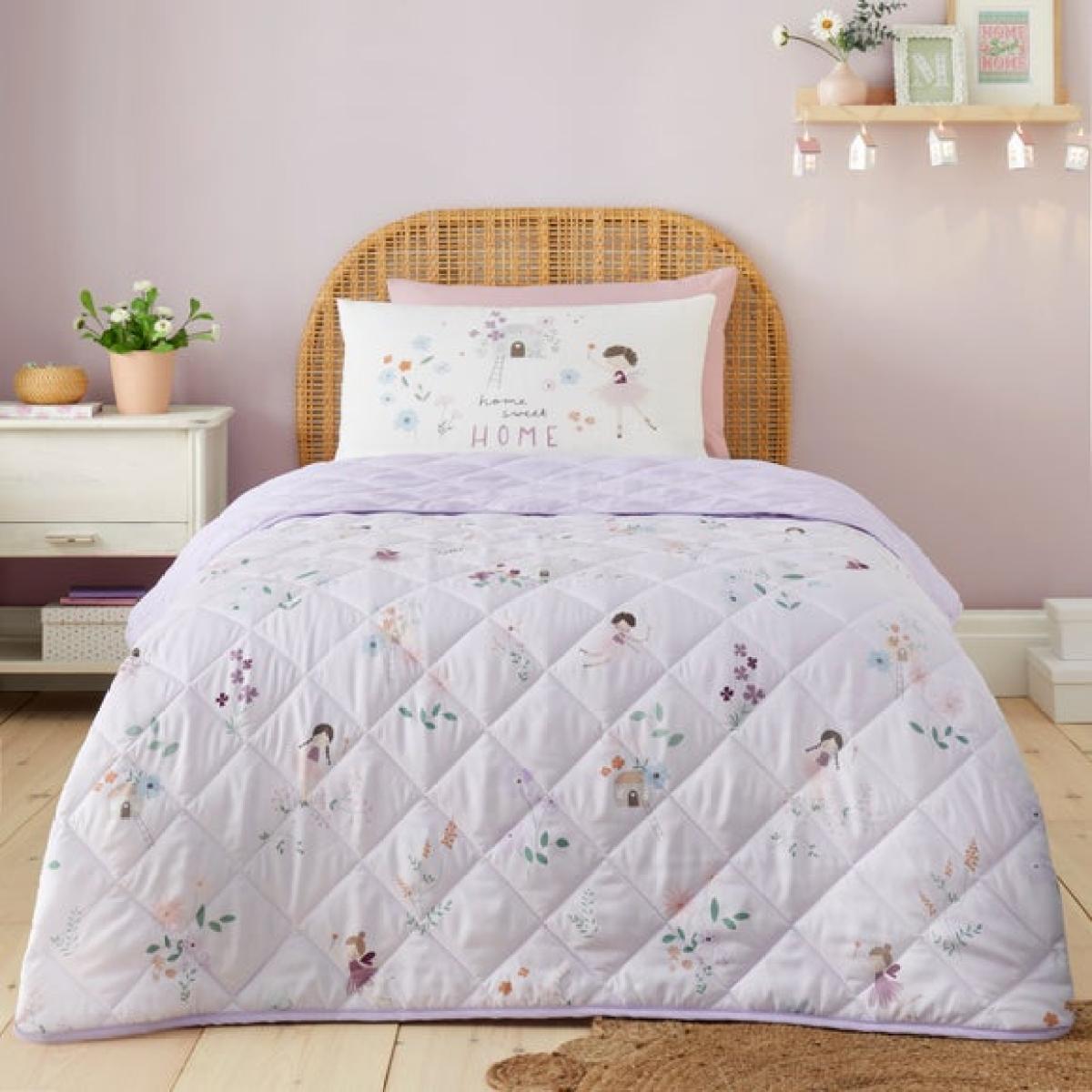 I really like the fairies bedspread for adding a whimsical touch to a child's bedroom or a cosy, feminine guest space. Its light colour palette and delicate fairy motifs work especially well in soft, pastel-themed interiors or scandi-inspired rooms where a gentle, calming vibe is key. Practical styling tips include layering it over a neutral bedding set to let the pattern stand out or pairing it with textured cushions and throws for added depth. It’s a versatile piece that can bring a touch of magic without overwhelming the space, making it perfect for creating a restful yet charming environment.