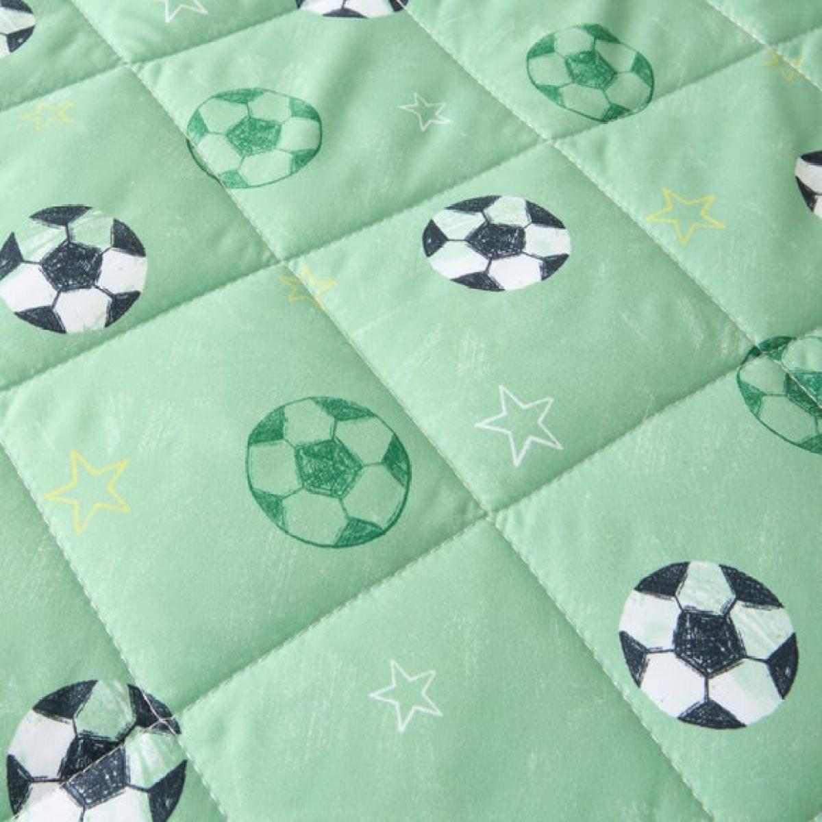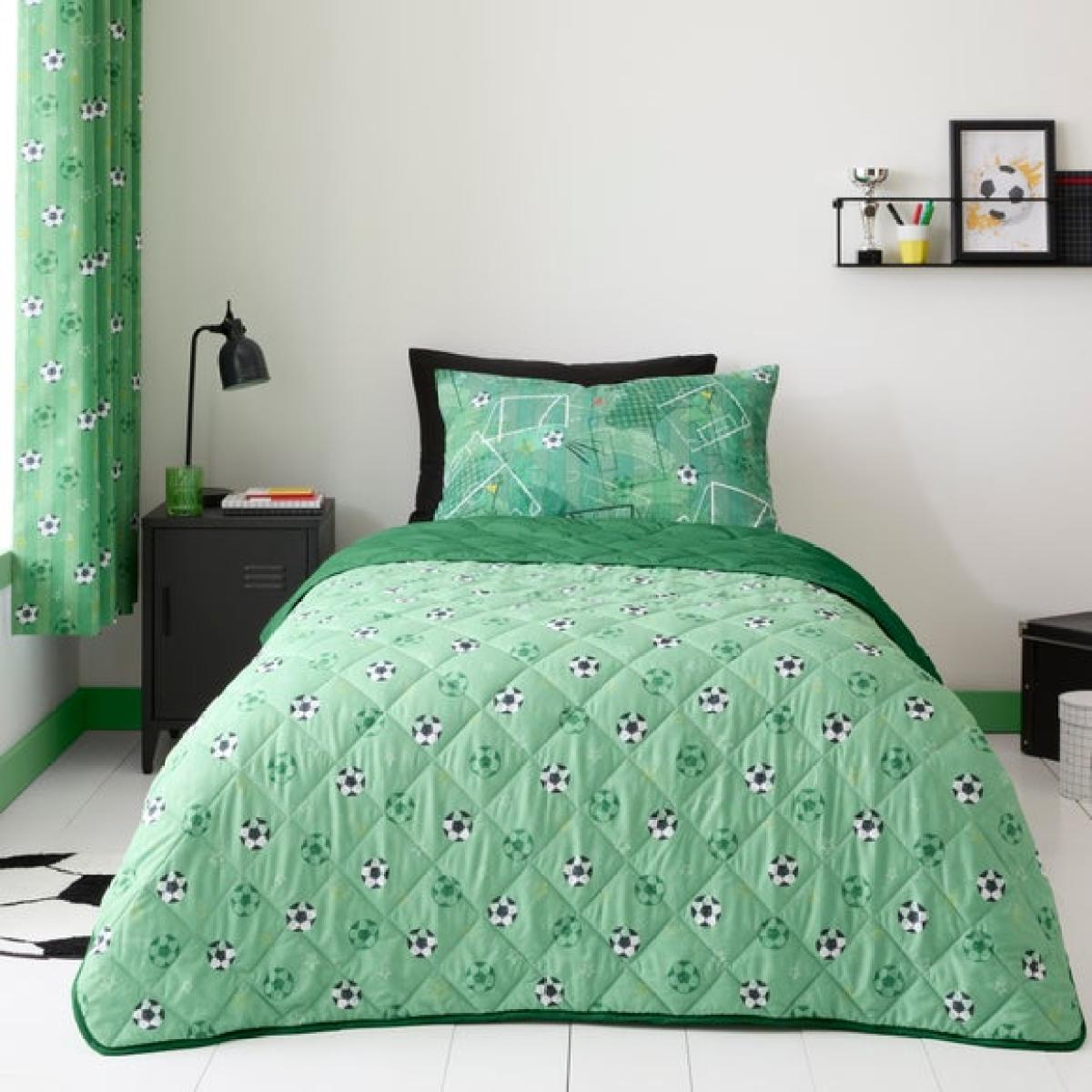 The footie bedspread is a fun and sporty addition that works particularly well in casual, masculine bedrooms or a child’s room with a football theme. I love its playful pattern and vibrant green colour, which can add a pop of colour to a neutral or minimalist space. For styling, pair it with neutral-toned bed linen and simple accessories to keep the look cohesive, or complement it with football-inspired decorative cushions. Practical tips include using it as a cozy throw over a plain duvet on cooler evenings or layering it with textured blankets for added warmth and visual interest. It's a versatile piece that injects personality and comfort into a relaxed, youthful interior.