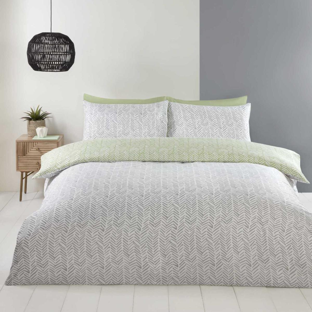Our So Soft printed bedding range is perfect for a great night's sleep. Cosy and gentle against your skin, made with 180 thread count microfibre, making it non iron and also durable. Our Helston design features an all over mark making herringbone with a contrasting reverse, this will bring a modern touch to any bedroom.
