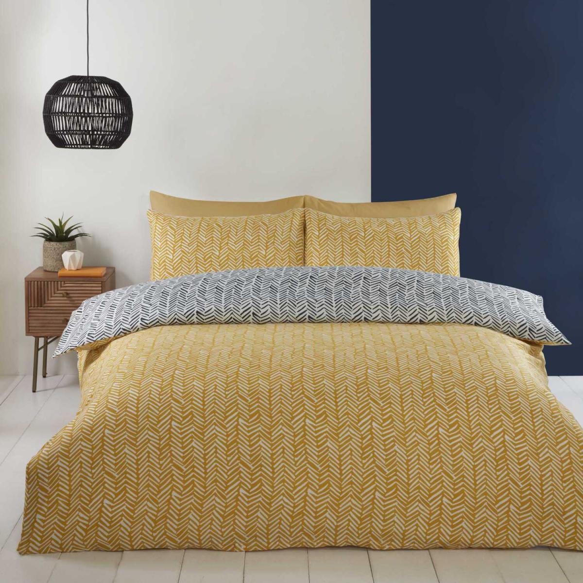 Our So Soft printed bedding range is perfect for a great night's sleep. Cosy and gentle against your skin, made with 180 thread count microfibre, making it non iron and also durable. Our Helston design features an all over mark making herringbone with a contrasting reverse, this will bring a modern touch to any bedroom.