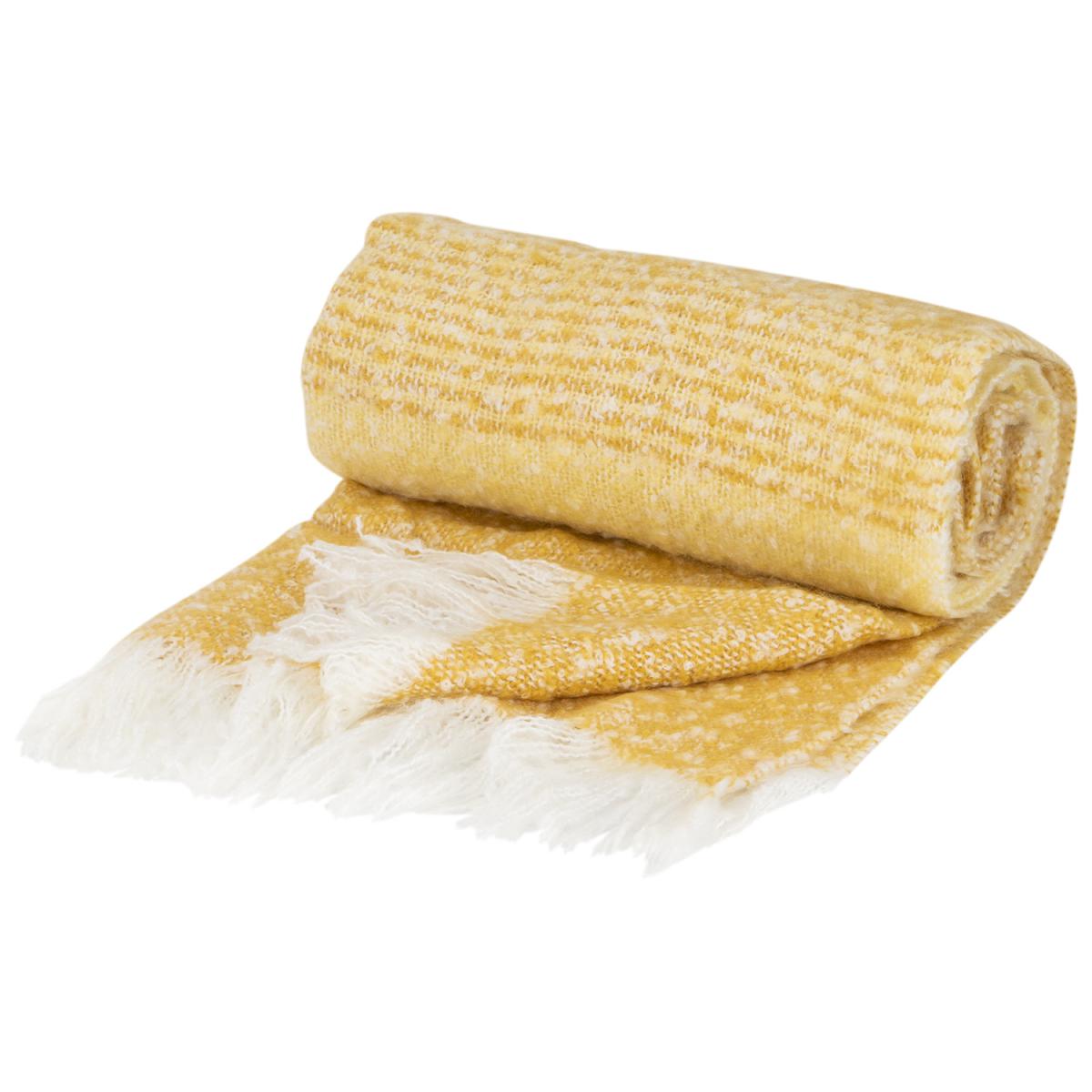 I love this yellow throw for adding a cheerful pop of colour to a neutral or minimalist interior. It works particularly well in Scandi or modern spaces, where its vibrant hue can act as a focal point. Practical styling tips include draping it over a sofa or armchair to create a cosy, inviting vibe, or folding it neatly at the foot of a bed for a casual yet polished look. The tonal stripe design adds subtle texture without overpowering, making it versatile enough to pair with both patterned and plain furnishings. Its size makes it perfect for layering or use as a statement accent in your living or sleeping areas.