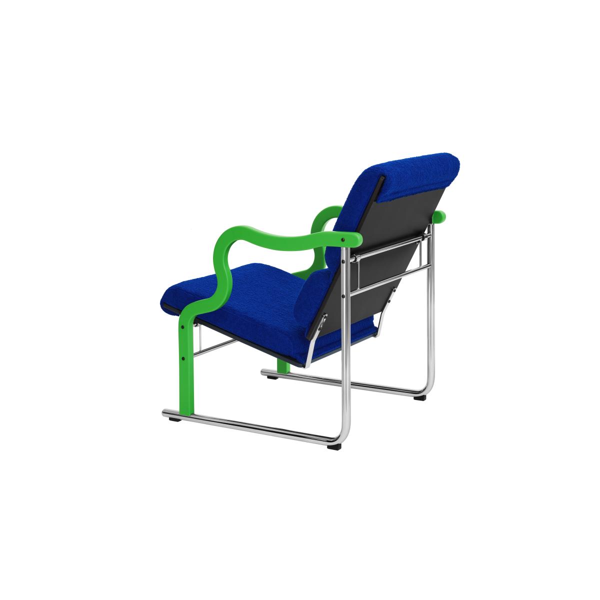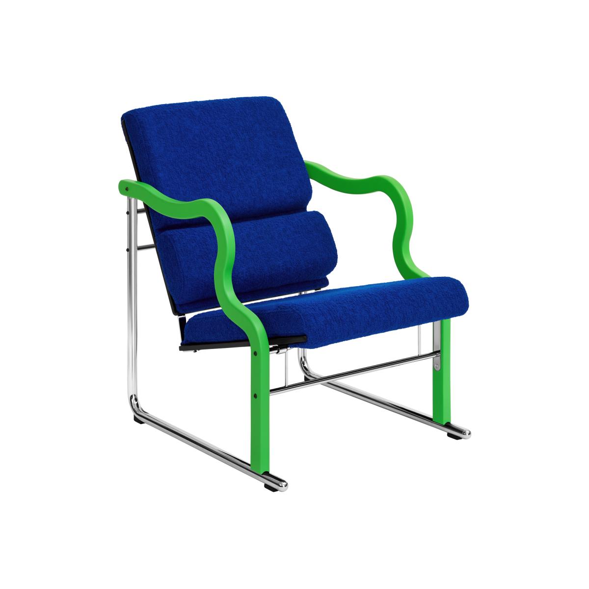 I love this chair for its bold colour and playful yet functional design. The ultramarine green makes it an eye-catching statement piece that can add a pop of colour to a neutral space or complement other vibrant decor. It works particularly well in contemporary interiors, minimal spaces, or even eclectic setups where its lively character can shine. For styling, consider pairing it with simple, understated furniture to let the chair stand out, or use it to add colour to a monochrome palette. Practical tips include positioning it near a reading nook or as a unique accent beside a plain sofa-its colourful frame and comfy cushion make it both visually appealing and inviting.