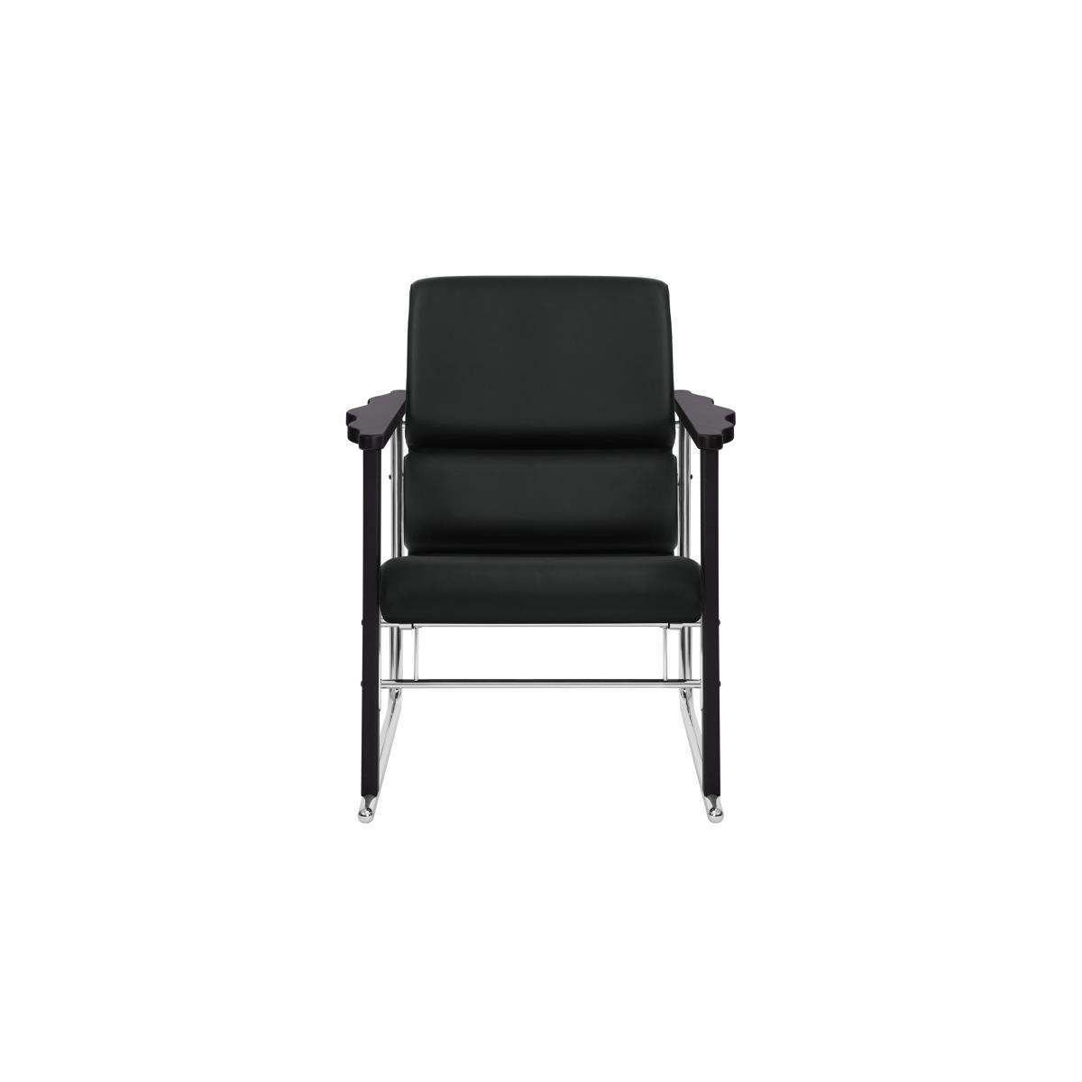 I love this chair for its sleek, minimalist design and the high-quality black leather finish, which makes it versatile for both modern and classic interiors. It works particularly well in contemporary spaces, home offices, or corporate reception areas where a sophisticated yet understated look is desired. For practical styling, consider pairing it with neutral-toned textiles or metallic accents to highlight its clean lines. Placing it alongside a minimalist side table or a statement floor lamp can also elevate the overall aesthetic. Its sturdy frame and leather upholstery make it a practical choice that's easy to maintain, ensuring it stays stylish and functional for years to come.