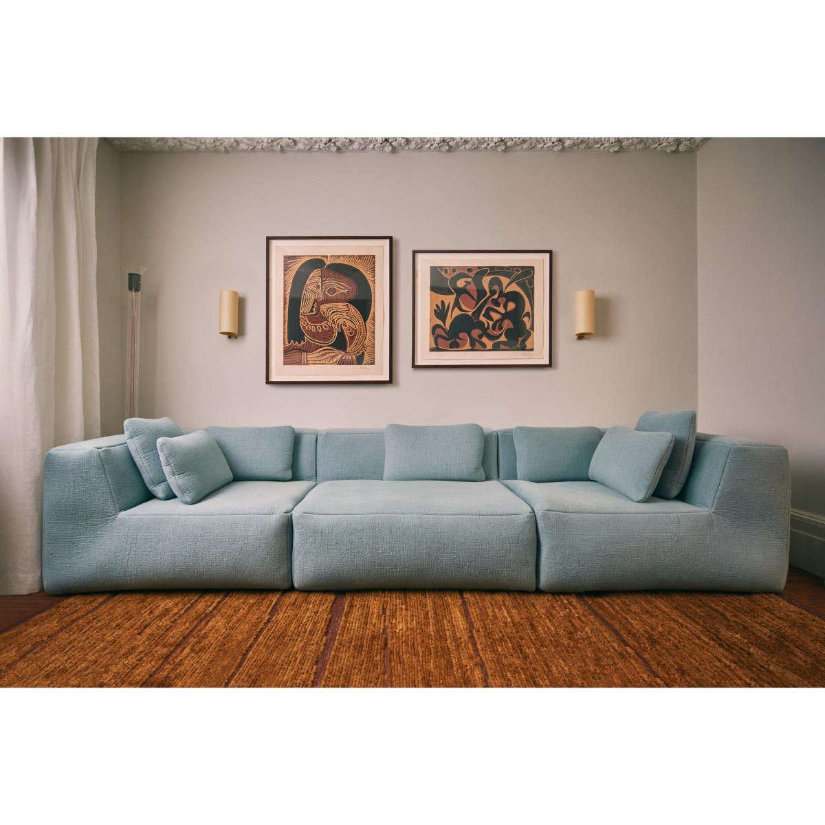 Great 3-seater sofa 330 cm from Hem is an impressive, generous sofa designed by Philippe Malouin that truly lives up to its name. With its large scale it becomes a natural gathering point in the living room. The sofa has a fixed frame and an enveloping backrest which provides both comfort and a distinct architectural expression. Thanks to solid material choices and clean lines, it works both as seating and as a strong interior detail in large social spaces. Pair with subdued lighting and a low coffee table for a harmonious whole.
