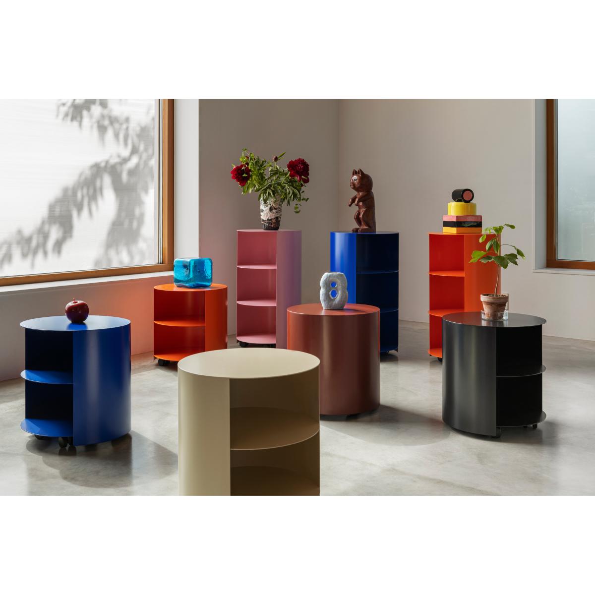 Hide side table Ø38x41 cm from Hem is a versatile side table designed by Karoline Fesser that combines discreet storage and visible display. The table is made of powder-coated steel and has casters for easy movement, making it simple to use as a pedestal or to slide in as extra storage space under a larger table. With its compact rounded shape and smart design, the Hide side table works both as a practical storage spot and as a decorative detail in the living room, hall, or bedroom.