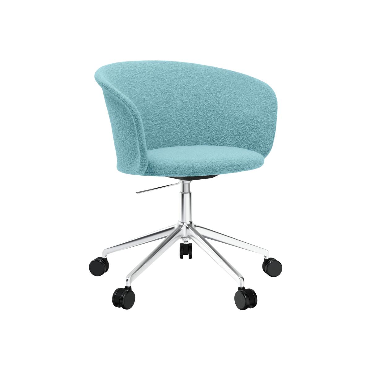 I love this swivel office chair for its sleek, modern aesthetic and functional design. The Icicle-polished aluminium base adds a contemporary, metallic touch that complements minimalist and Scandinavian interiors perfectly. It works beautifully in home offices with a muted colour palette, providing a pop of soft colour with the pastel blue fabric, or it can serve as an accent piece in more vibrant spaces. For practical styling tips, pair it with a simple, streamlined desk and accessories in neutral tones for a clean look, or mix it with textured textiles and layered accessories for a cosy, yet professional vibe. Its versatility makes it ideal for both dedicated workspaces and more casual creative areas.