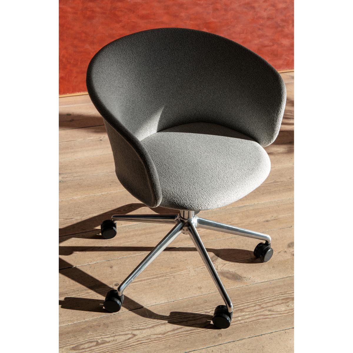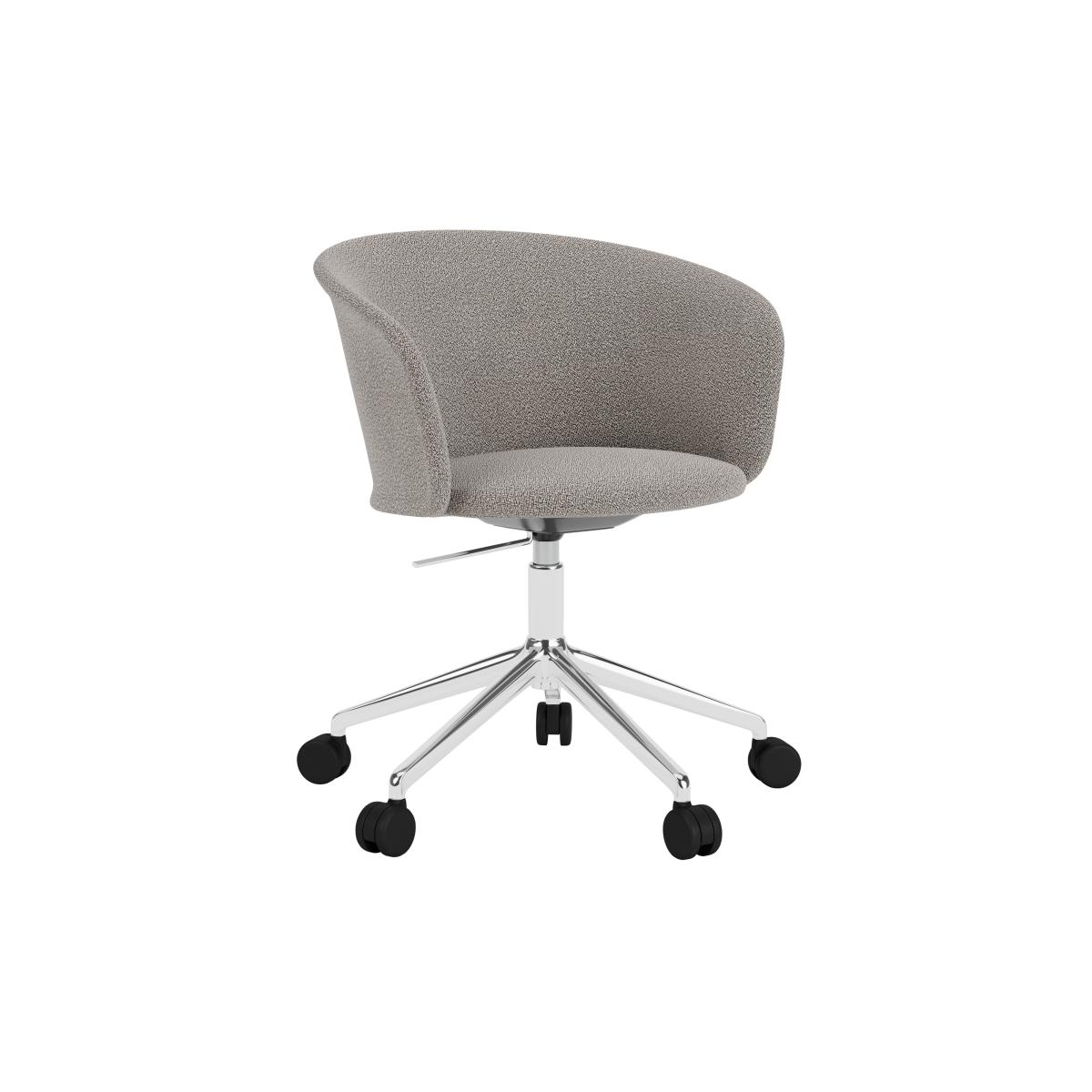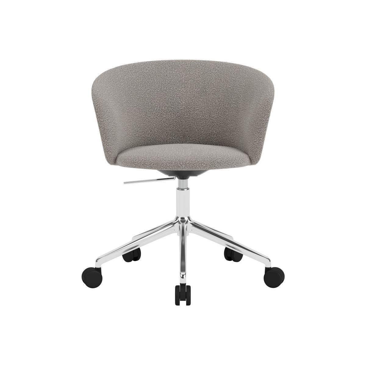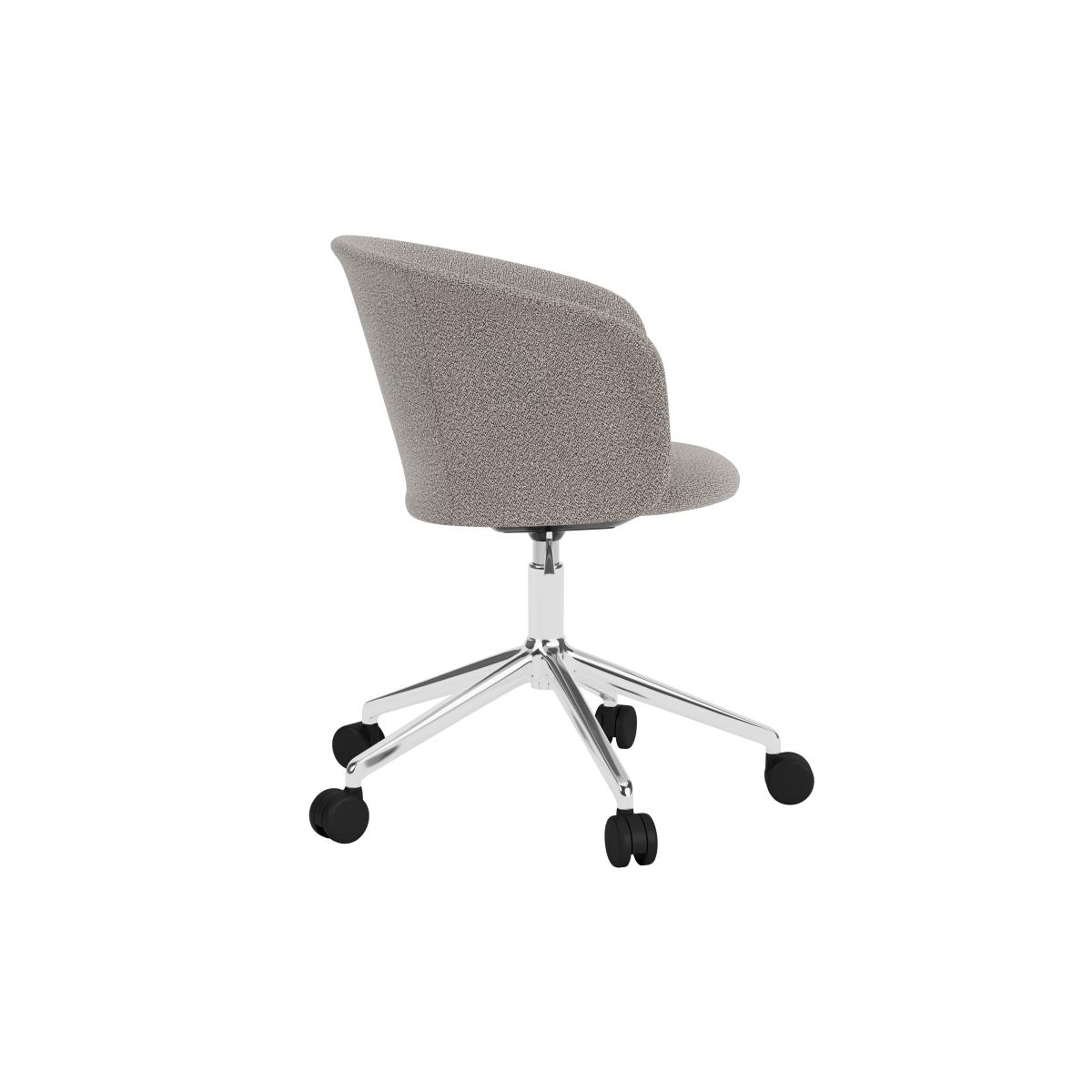 I love this swivel office chair for its sleek, modern aesthetic and versatile functionality. Its porcelain-polished aluminium base adds a touch of sophistication, making it suitable for contemporary or minimalistic interiors, whether in a home office or a creative workspace. The neutral grey cushioned seat offers comfort without compromising style, and its compact, rounded form lends itself well to smaller spaces or co-working areas. Practical styling tips include pairing it with ergonomic desks and neutral-toned accessories for a clean look, or adding colourful cushions for a more personalised, lively touch. Its understated design combined with quality materials makes it a smart choice for any stylish yet practical office set-up.