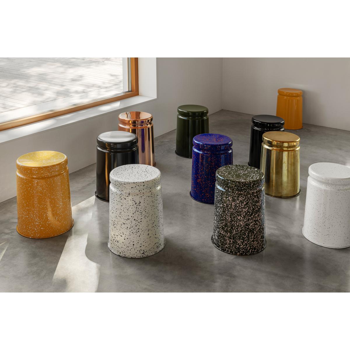 Last stool Ø32x44 cm from Hem is a robust and timeless stool designed by Max Lamb. Pressed from a single piece of metal, the stool is both strong and easy to move thanks to the wide hand-sized recess. Its simple, sculptural form works equally well as a seat at the table or as a decorative side table by the sofa. The stool is made for everyday use and develops a beautiful natural patina on the metal surface, adding character over time. Dimensions: Ø32×44 cm.