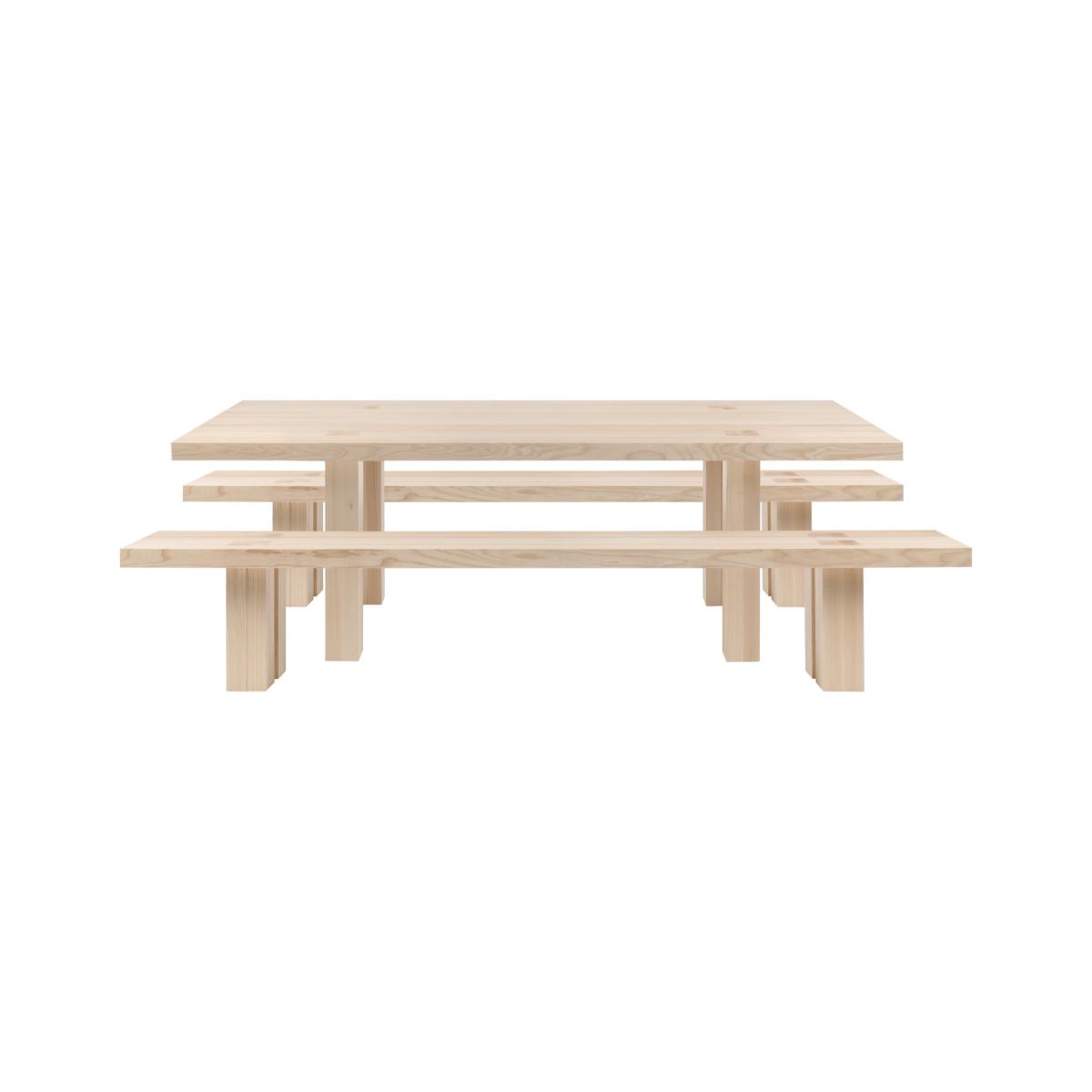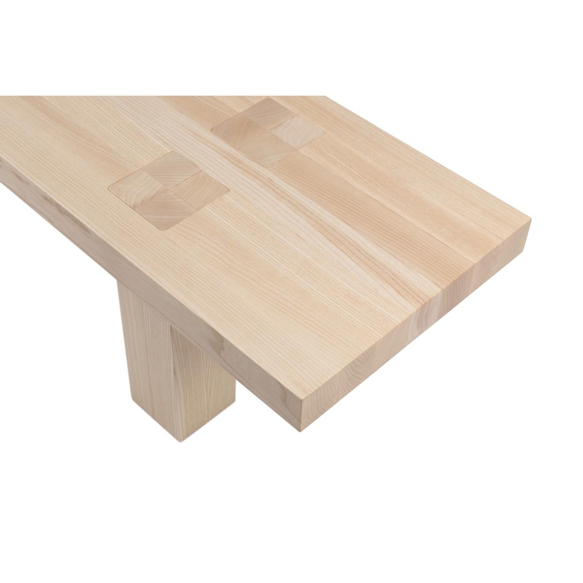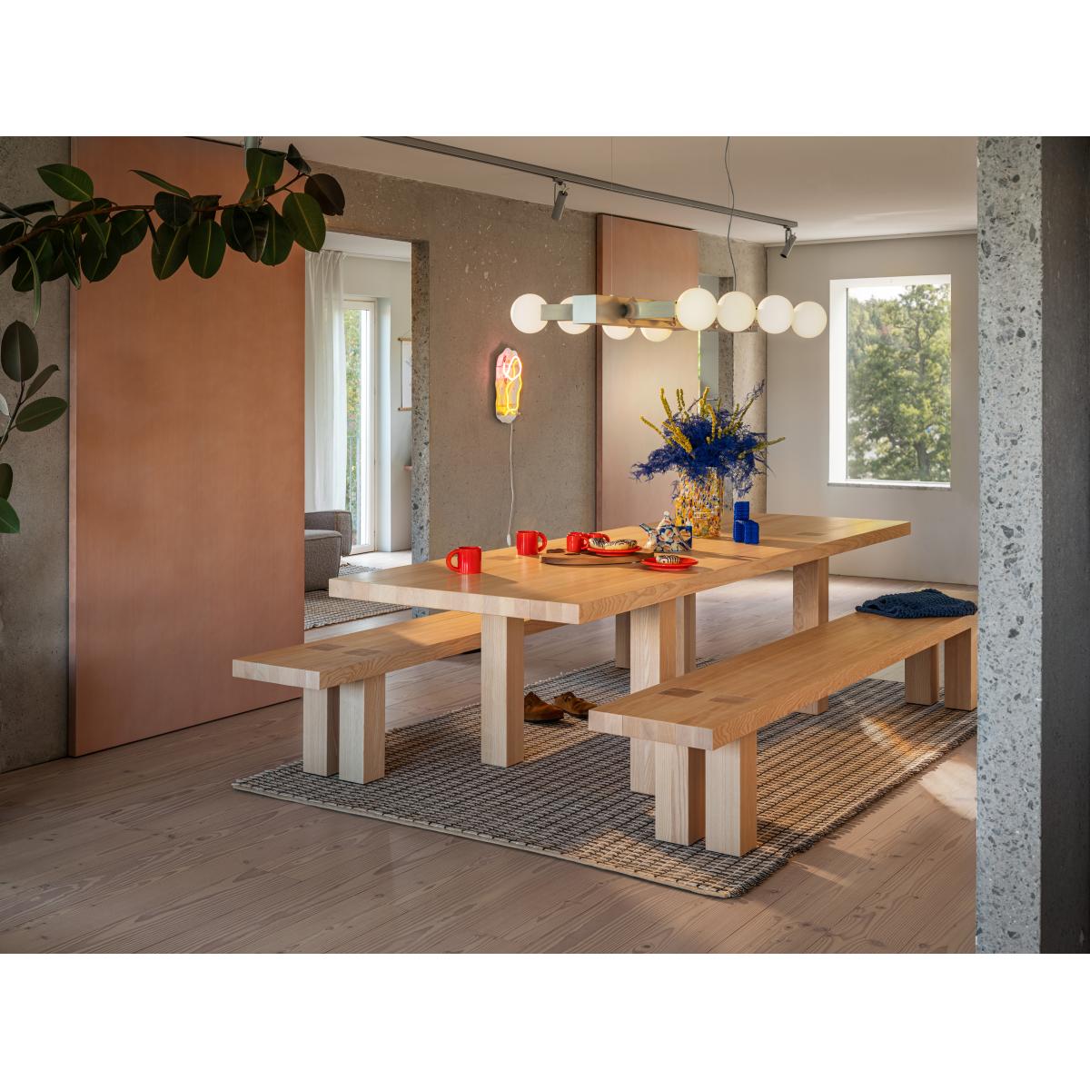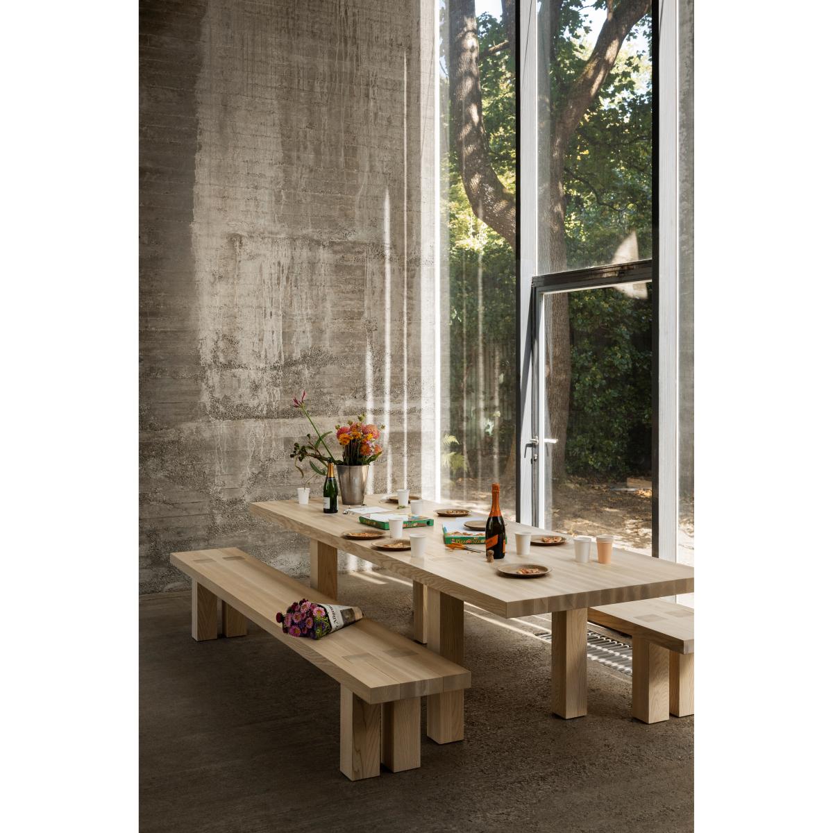 Max dining table with benches 250 cm from Hem is a robust dining table designed by Max Lamb with matching benches, crafted in solid ash for a monolithic and enduring feel. The table’s impressive 250 cm length and sturdy construction give it an architectural presence that withstands everyday use and can be passed down through generations. Its simple, elemental form and carefully executed details highlight the material’s grain and make the table the home’s natural gathering point for long dinners and socializing.