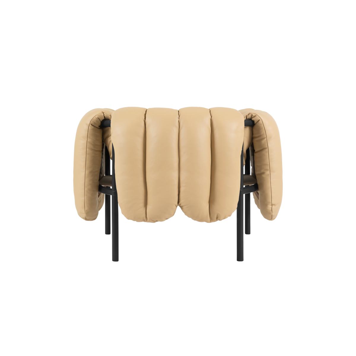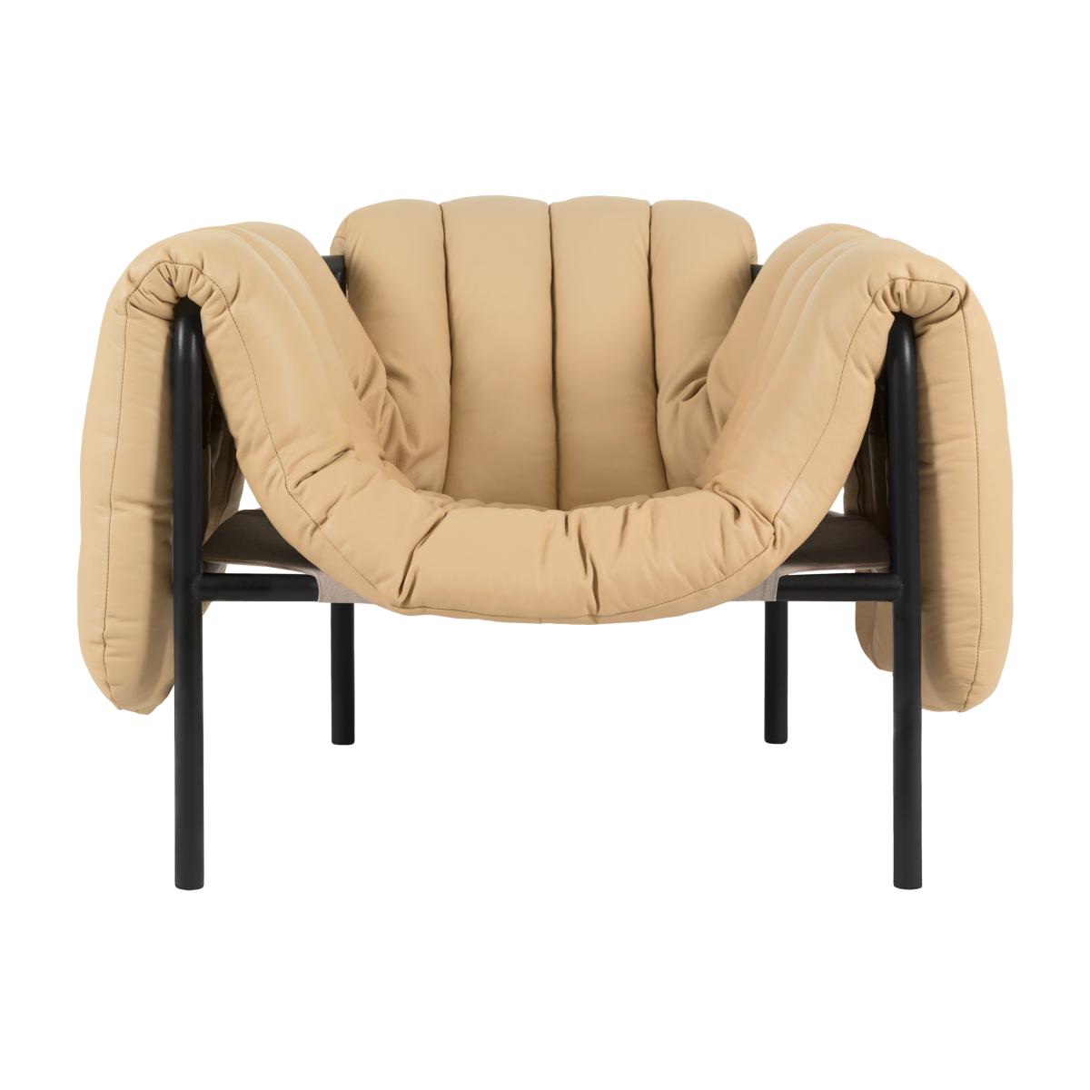 I love the puffy beige armchair for its bold, relaxed silhouette that works well in both contemporary and Scandinavian-inspired interiors. Its combination of soft sand leather and sleek black legs adds visual interest without feeling overly ornate, making it versatile for a variety of colour schemes. It’s perfect for creating a cosy corner in a living room or a relaxed reading nook. For styling, consider pairing it with textured cushions or a plush throw in neutral or muted tones to enhance its inviting feel. To keep the look balanced, pair it with minimalist furniture or natural materials like wood and woven textiles, which complement its contemporary yet comfy vibe.