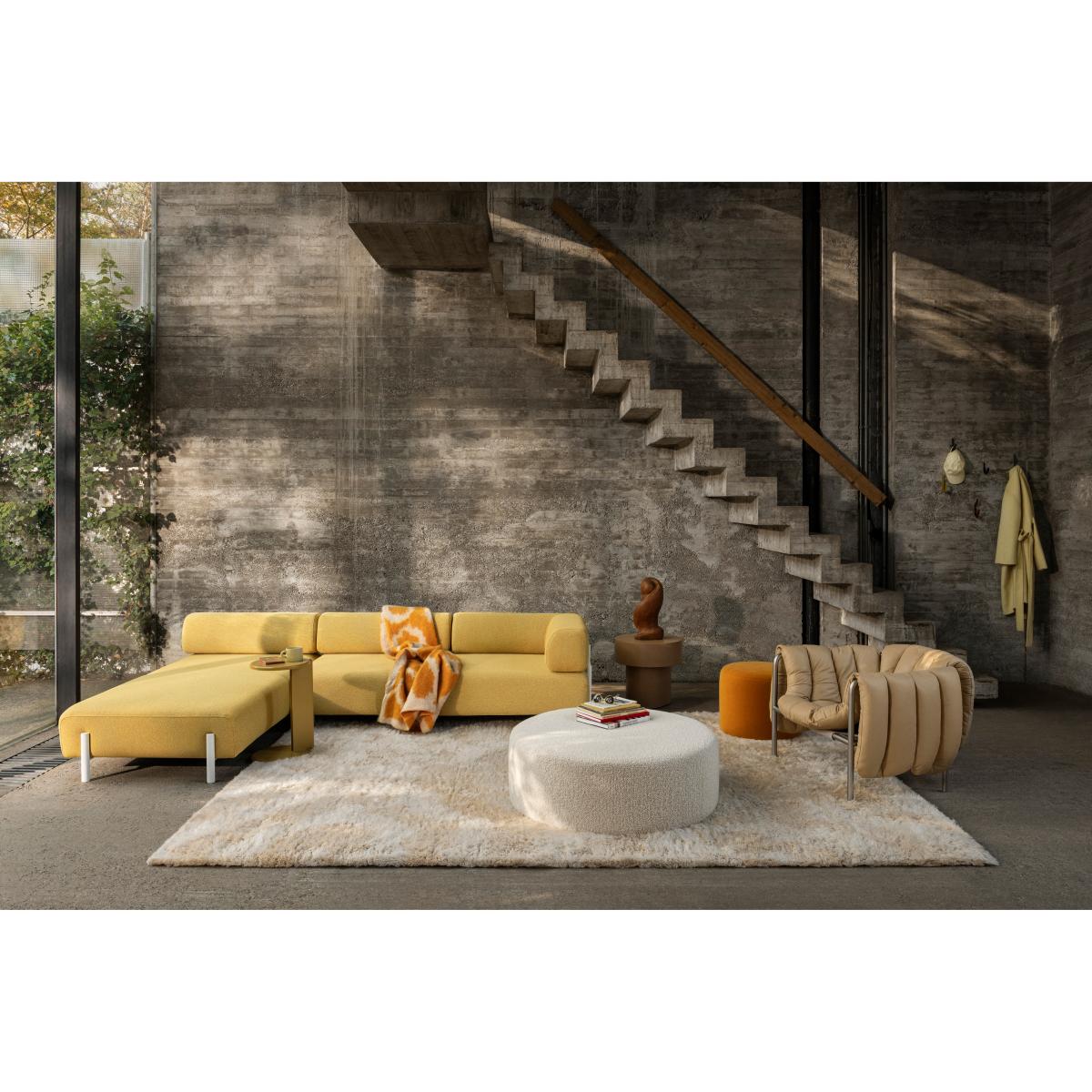 Puffy lounge chair from Hem is an embracing armchair designed by Faye Toogood where the padded, quilted fabric contrasts with a distinct tubular steel frame. The generous, soft padding envelops the body and provides a secure seating feel while the firmer frame adds stability and a graphic character. Puffy’s expression combines modernist structure with a playful and inviting look. Fits in a reading nook or as a relaxing armchair in the living room and becomes a striking interior detail offering both comfort and form.