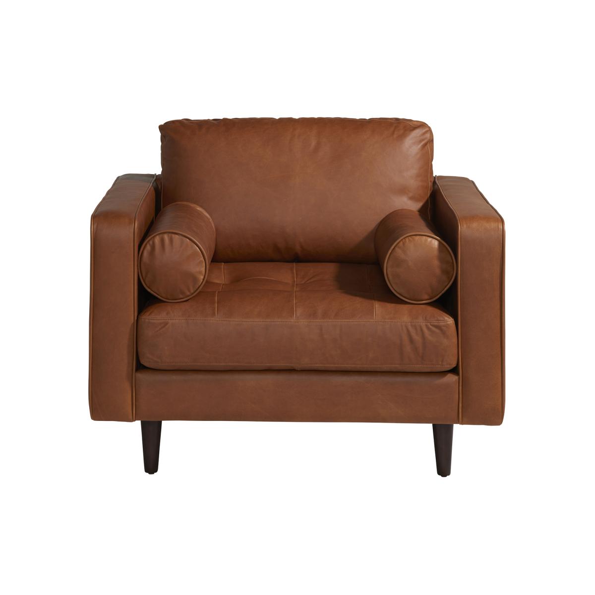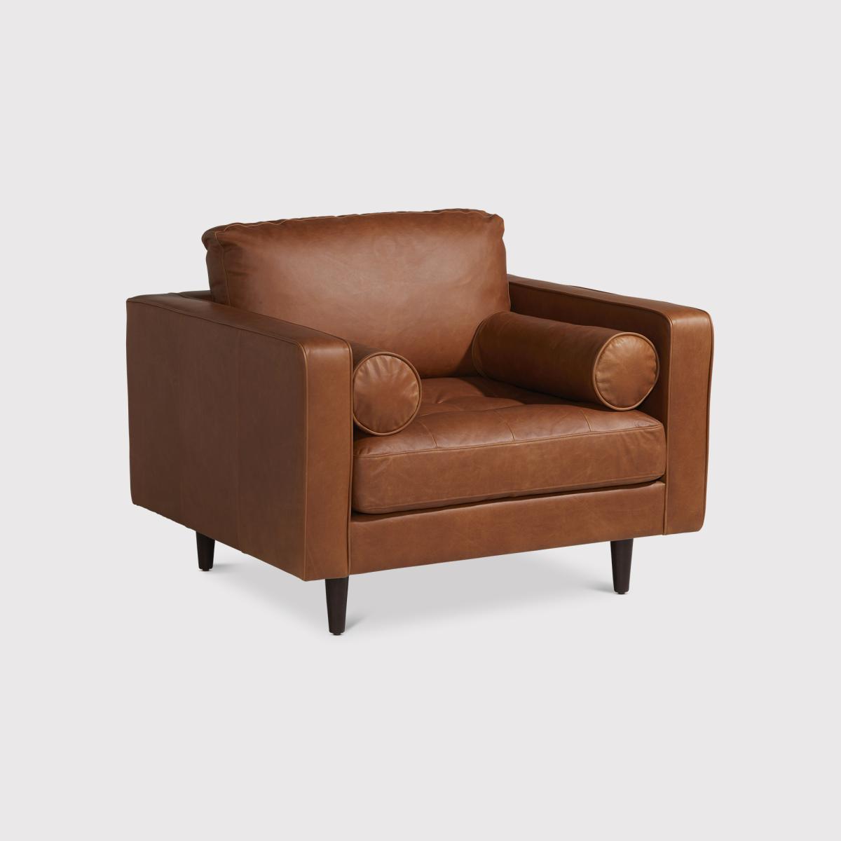 I’m a big fan of the Hemingway chair for its clean lines and rich tan leather - it instantly adds warmth without feeling fussy. Its boxy shape and tapered legs suit modern, mid-century and industrial schemes equally well, making it a versatile staple in a living room, snug or home office. To style, drape a neutral wool throw over one arm and add a textured cushion in a muted tone (think forest green or slate blue) for contrast. Position it beside a slim metal-framed side table with a task lamp and a small stack of books, and anchor the area with a low-pile rug in geometric or tonal stripes.