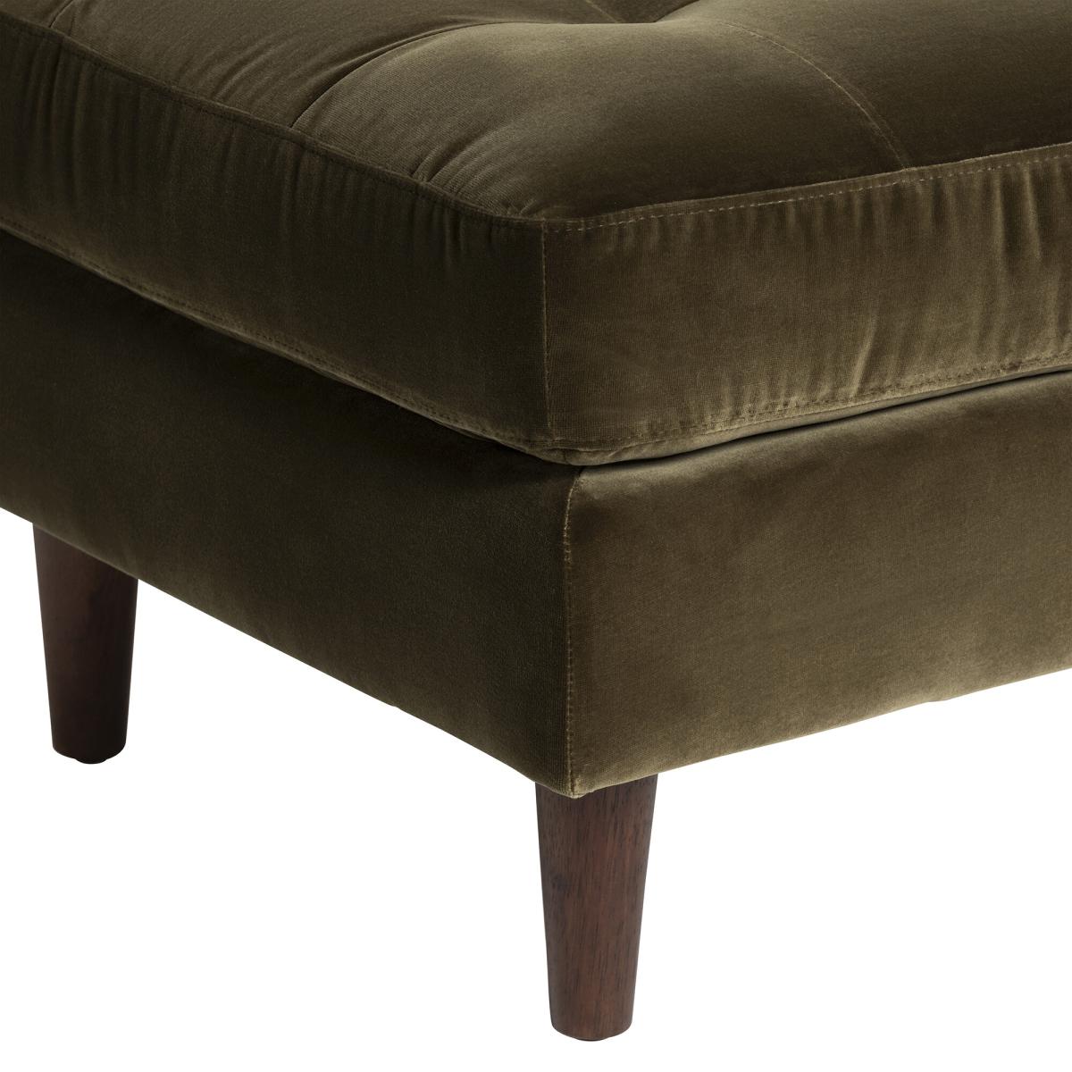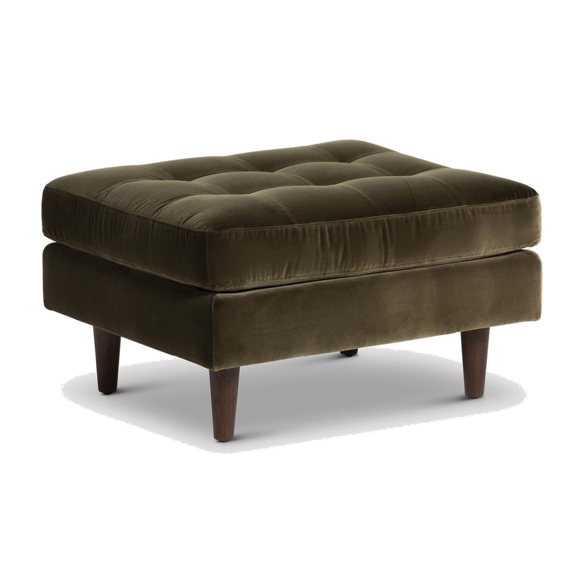 Indulge in the comfort of the Hemingway Ottoman, featuring a plush tufted top ideal for resting tired feet. Upholstered in classic green velvet, it's the perfect complement to the Hemingway chair or sofa. Explore the entire Hemingway range for a coordinated look throughout your space.