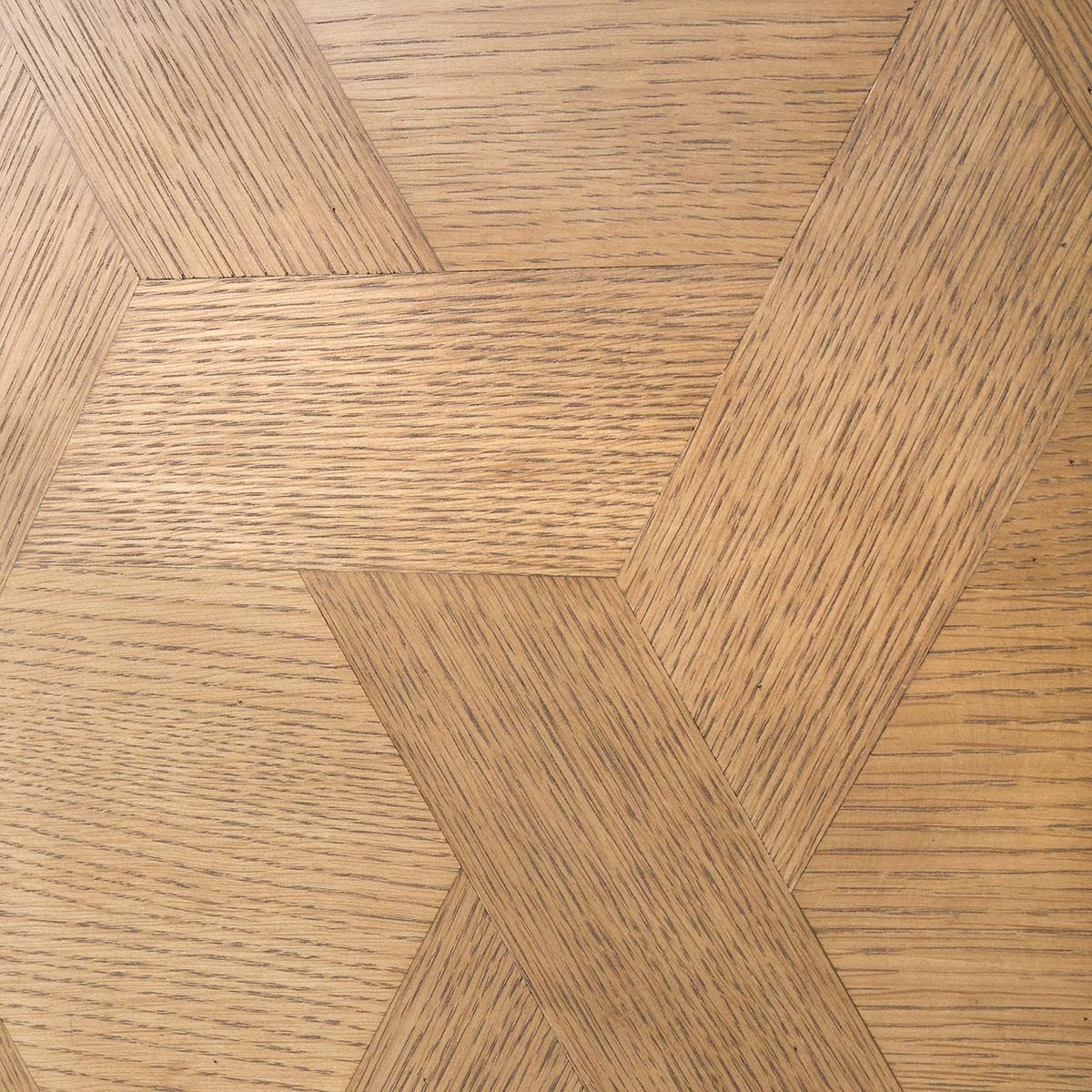 The Hemingway side table, a solid oak bedside nightstand, adorned with an ornate, interwoven parquetry front, and spacious drawer storage. Its premium finish highlights the natural beauty of the wood, complemented by gold metal handles and a framework base that lend a modern touch while retaining timeless elegance. The interwoven pattern is more than just a decorative element; it's a testament to the skilled craftsmanship and attention to detail that goes into creating this piece. The precision and artistry employed in forming this design elevate the piece beyond mere functionality, turning it into a statement of artistic excellence within your living space. This lamp table marries functionality with aestheticsthe open framework base, finished in matte gold, complements the hexagonal-shaped gold accent handles, echoing the geometric motif within the parquetry. This fusion of design elements lends a contemporary touch while retaining timeless elegance. Delivered preassembled, it's ready to grace your home. With meticulous care taken in the crafting process, each detail has been expertly put together, ensuring that the table arrives in its entirety, ready to be showcased in your home. W50cm D40cm H60cm Interwoven wood veneer pattern Iron framework base and handles