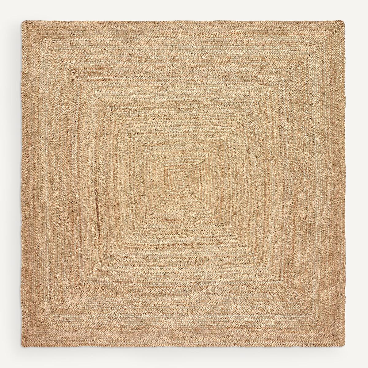 Authentic nuanced texture, natural tones, contemporary rusticity... Hempy is a jute rug hand-woven in India by passionate weavers. High quality, AMPM rugs are handcrafted. A decorative rug can offer thermal and sound insulation, as well as a warm and cosy atmosphere. Product Details • 100% jute • Thickness of rug: 0.8cm • Square rug • Weight: 2000g/m² • Craftsmanship: Hand-woven. Quality Info • Each piece is handcrafted, according to ancestral know-how. There may therefore be slight variations in colour and weave from one rug to another.. They contribute to the beauty of each piece and make it unique. Care instructions • Vacuum regularly • Remove any stains immediately with a clean, damp cloth. Dimensions • Width: 250cm • Depth: 250cmDelivery:. Available for home delivery. • FIBRE FROM A WATER-SAVING CROP. Jute is a material that requires little irrigation and very few phytosanitary products. Dimensions and weight of parcel L254 x H17 x D17cm. 14kg