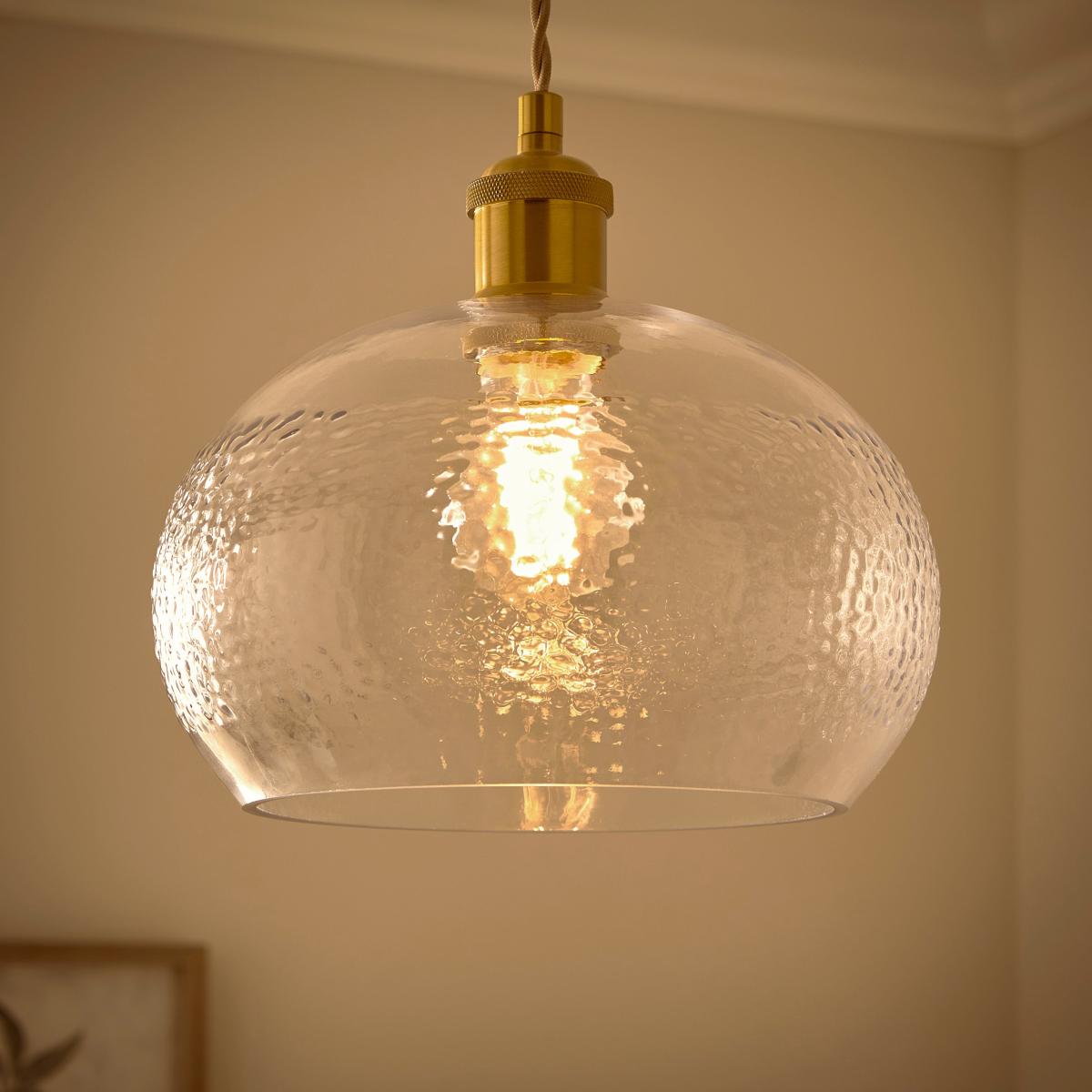 I love the Hemsby pendant shade for its versatile, clean design that complements a range of interiors, from mid-century modern to contemporary schemes. Its clear, textured glass adds a subtle tactile element while diffusing light softly, making it ideal for kitchens, dining areas, or living rooms where you want a statement yet understated lighting feature. When styling, consider pairing it with vintage-inspired filament bulbs or modern LED options to enhance its look. It works particularly well in spaces that feature natural materials or neutral palettes, providing an effortless touch of elegance without overpowering the existing decor.