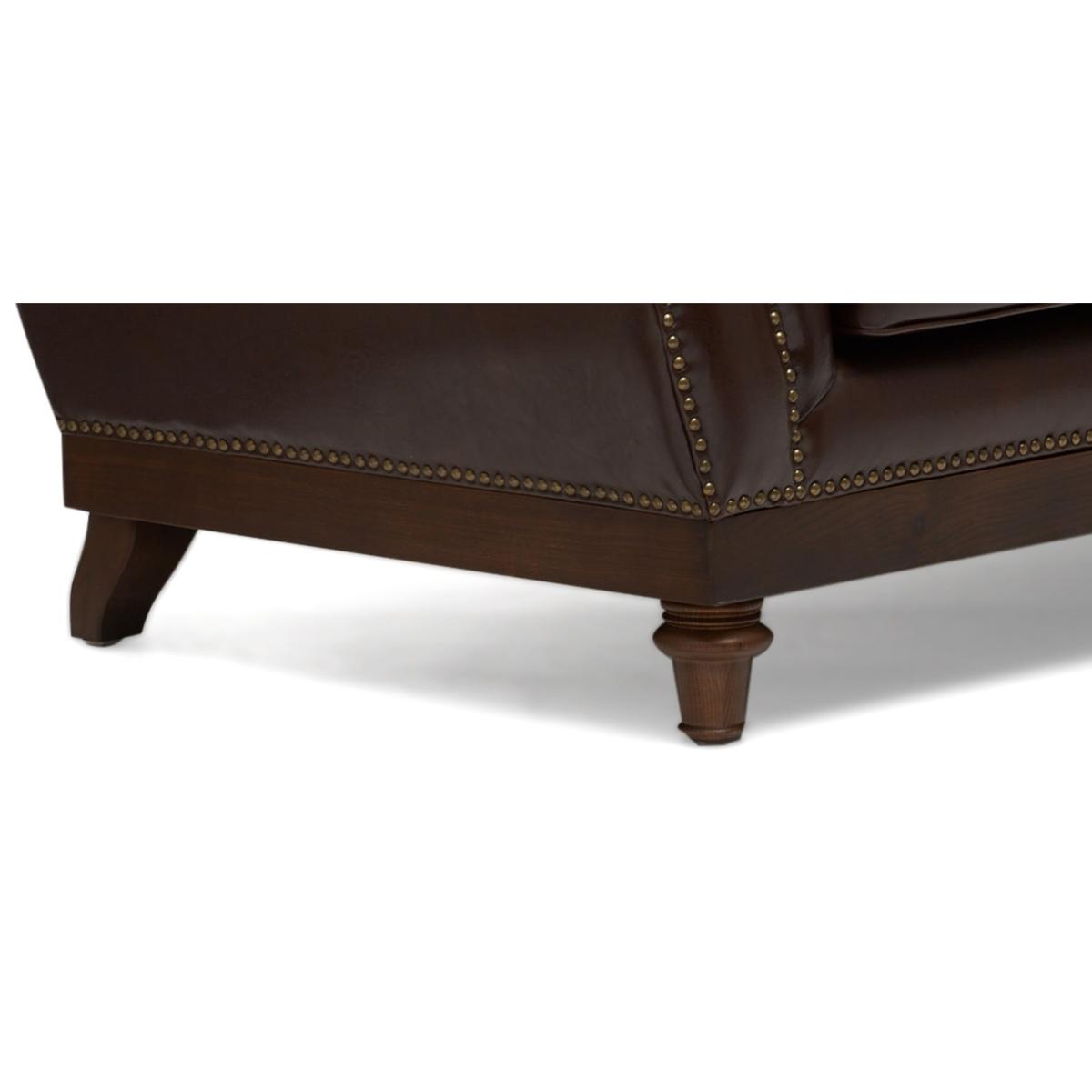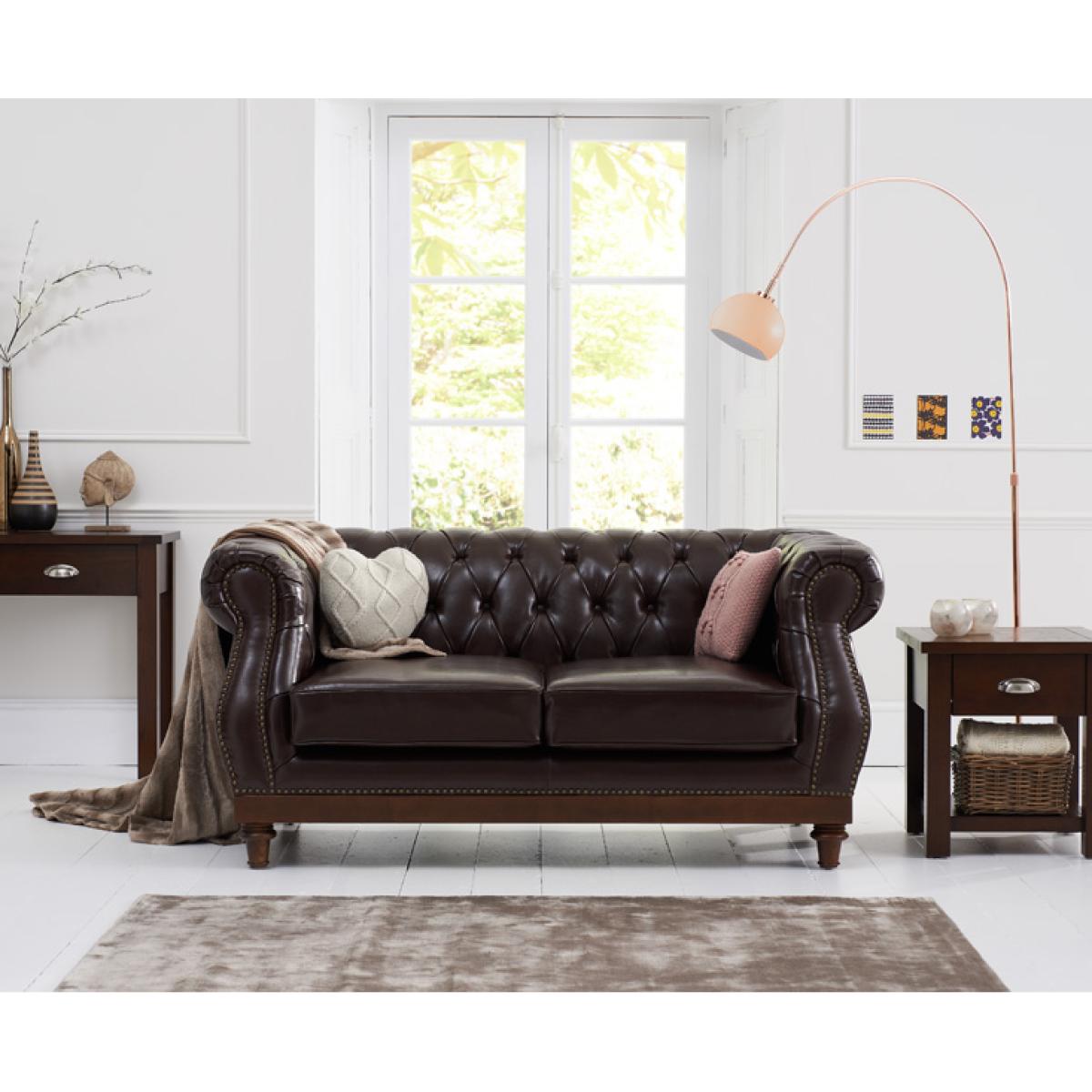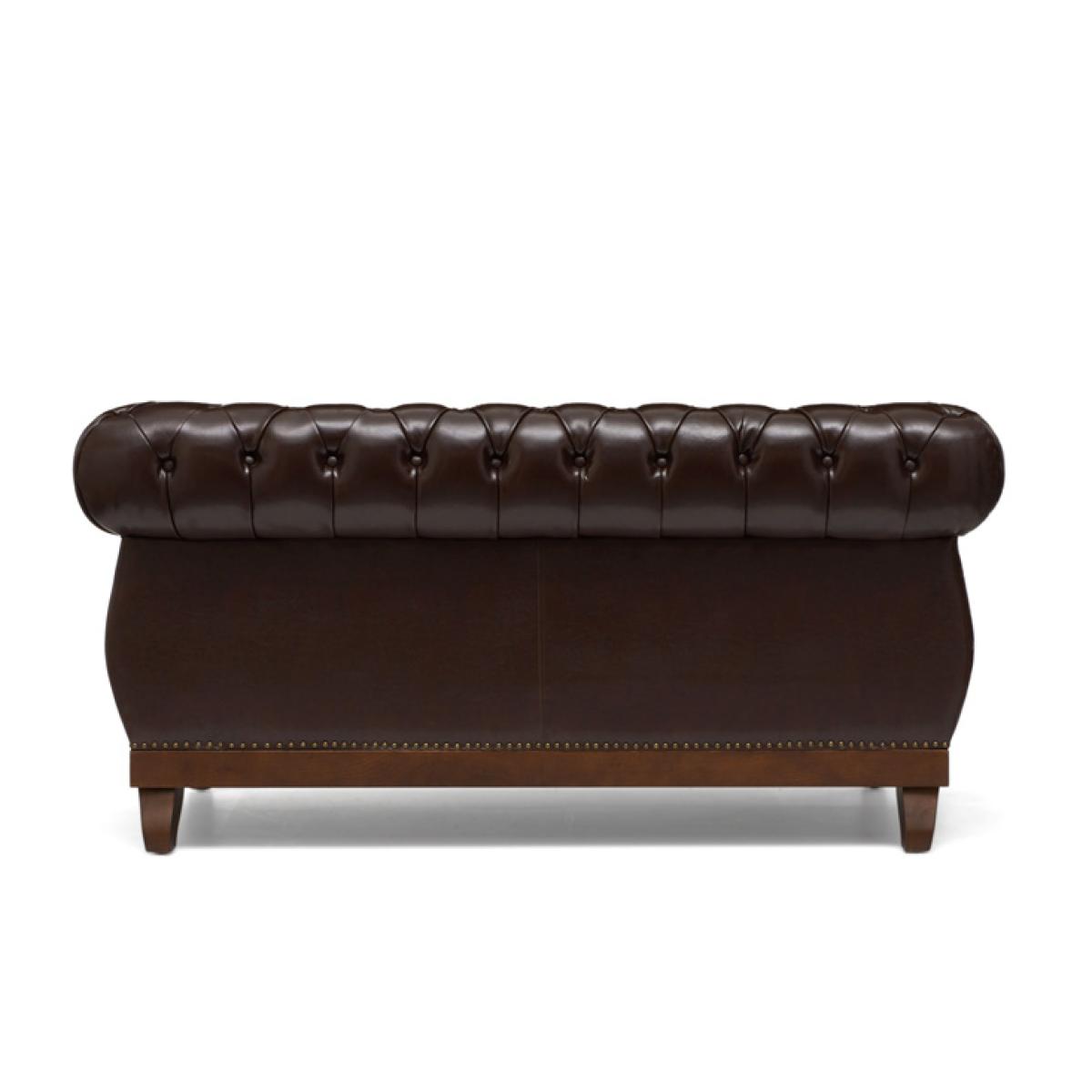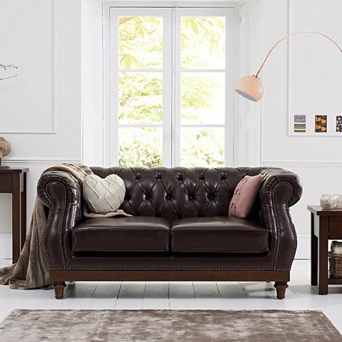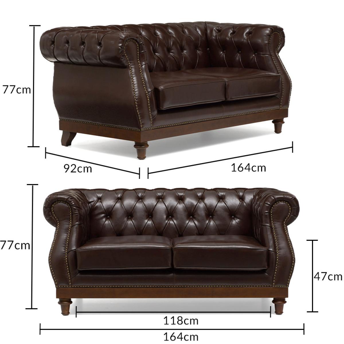 The Henbury Chesterfield Brown Leather 2 Seater Sofa is a stunning example of quality craftsmanship and style. Featuring a charming traditional design, the brown leather sofa comfortably seats 2 people and makes a stunning impression in any home. Upholstered in smooth Leather, the 2 seater sofa features foam filled seat cushions and a striking tufted button design. The sofa Is complete with elegant rolled armrests and metal studs for a classical, luxury look that effortlessly suits any décor. The frame and legs of the sofa has been carefully crafted from resilient ash that contrasts beautifully with the leather to complete the look and offer unrivalled durability.