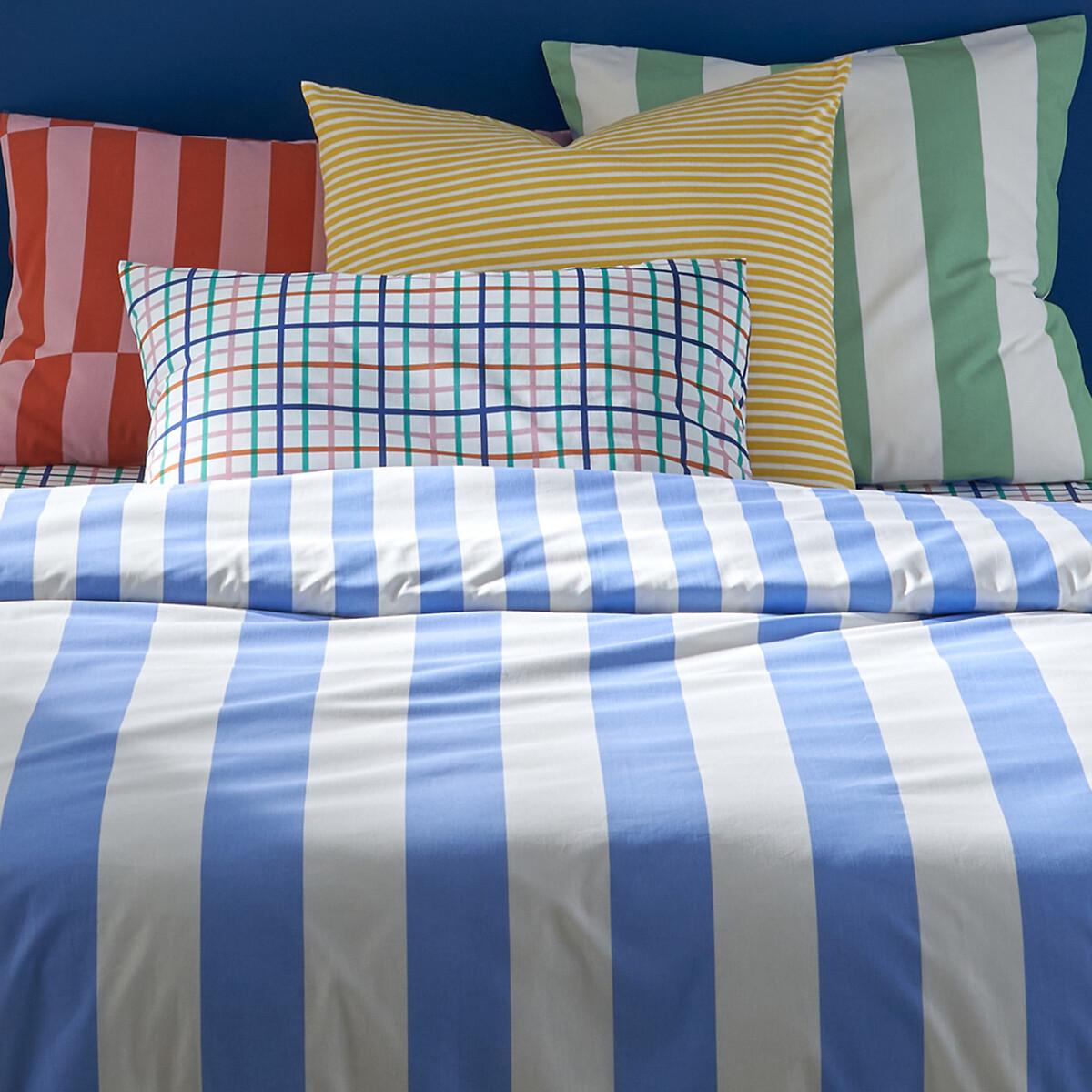 Vertical or horizontal, thin or wide, neutral or colourful. Stripes look great everywhere. Bed linen, cushion covers, bathroom linen, shower mats, curtains... ! Made in Portugal and designed by La Redoute Interiors. Cotton is part of our daily lives. We love it for its suppleness and softness. Easy Care, it is ideal for the beds of young and old alike!Product Details • 100% cotton • 144 thread count • One side large stripes, one side small stripes • Straight buttoned hem. Over the seasons, bring your personal touch by mixing the Hendaye range with our plain Scenario range. Care Advice • Machine washable at 60°C • By washing your laundry at 40°C instead of 60°C, you limit energy consumption. Sizes • 140 x 200cm: Single • 200 x 200cm: Double • 240 x 220cm: King • 260 x 240cm: Super King • Made in Europe. • OEKO-TEX® Standard 100. Standard 100 certification by OEKO-TEX® tests textile products for harmful substances via an independent, international label.