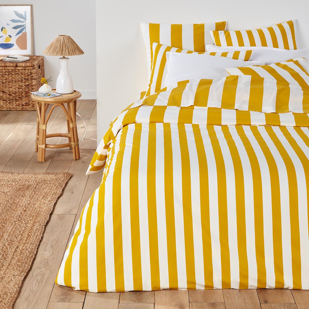 Vertical or horizontal, thin or wide, neutral or colourful. Stripes look great everywhere. Bed linen, cushion covers, bathroom linen, shower mats, curtains... ! Made in Portugal with the La Redoute Interiors signature. Cotton is part of our daily lives. We love it for its suppleness and softness. Easy Care, it is ideal for the beds of young and old alike!Product Details • 100% cotton • 144 thread count • One side large stripes • One side small stripes. Over the seasons, bring your personal touch by mixing the Hendaye range with our plain Scenario range.Care Advice • Machine washable at 60°C • By washing your laundry at 40°C instead of 60°C, you limit energy consumption. Dimensions • 50 x 70cm: Rectangular pillowcase • 63 x 63cm: Square pillowcase • MADE IN PORTUGAL. • OEKO-TEX® Standard 100. Standard 100 certification by OEKO-TEX® tests textile products for harmful substances via an independent, international label.
