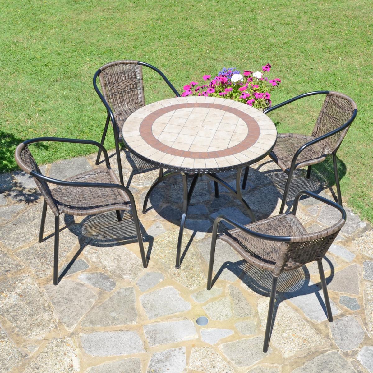 Henderson 91cm Patio Table with 4 Springdale Chairs Set Brown