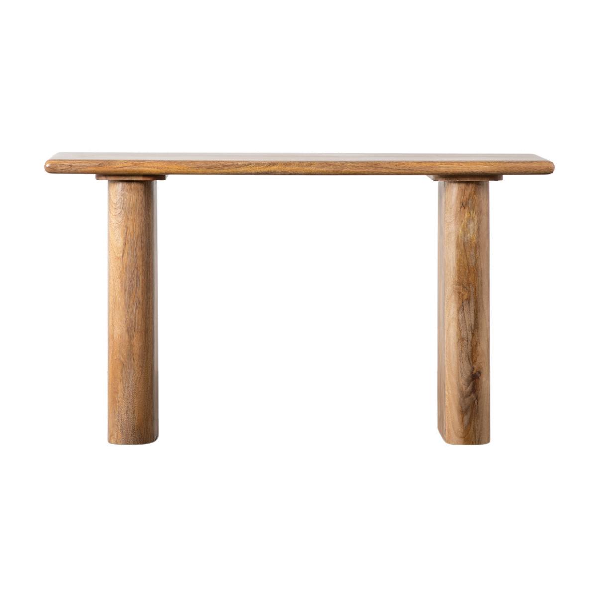 I’m a fan of the Henderson for its clean lines and solid timber build - it brings warmth without fuss. Its simple silhouette suits modern, Scandi or even industrial schemes, slipping easily into an entrance hall or sofa-backed display. To style it, start with a round mirror or slim gallery ledge above, then layer a mix of heights on the surface: a low ceramic bowl, a stack of art books and a taller metal lamp or sculptural vase. Leave some breathing space around the legs to let that sculptural form show, and add a small tray for keys or loose change.
