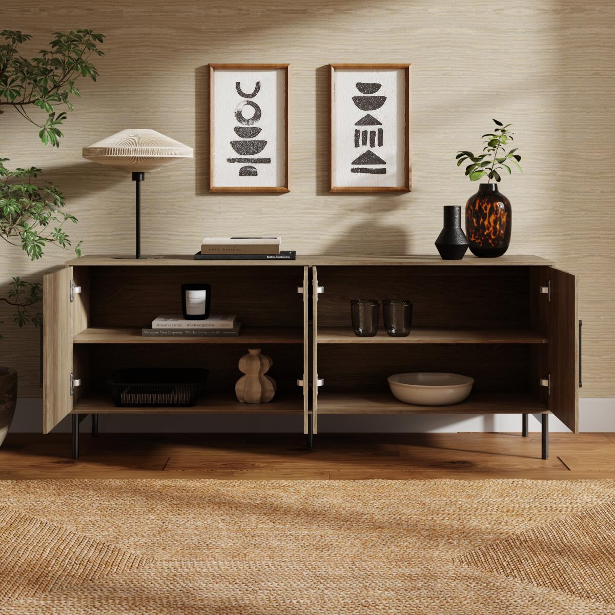 I really like this sideboard for its clean, understated design and the versatility it offers. It works particularly well in contemporary or Scandi-inspired interiors, where its simple lines and warm wood tone add a touch of natural elegance. Practical styling tips include pairing it with a few decorative vases or candles on top, keeping the surface uncluttered for a sleek look. Inside, it offers generous storage for tableware, linens, or other essentials, helping to keep your space tidy. Its neutral finish also makes it adaptable for mix-and-match schemes, whether you’re aiming for a cosy family dining room or a stylish living area.
