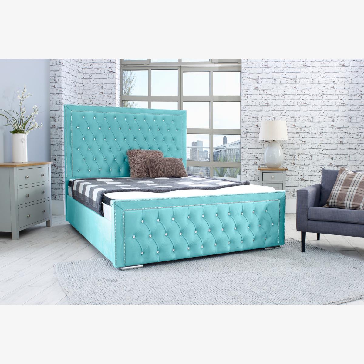 If you are all for glamour embedded in comfort, the Hendrick bed is will certainly add a touch of opulence and elegance to your bedroom. Featuring a trendy design and elegant, tall headboard stylishly upholstered in contemporary Spanish upholstery, the plush velvety fabric covering is perfection at its best. The headboard and footboard feature a classic tufted buttoning design that comes in crystal. The edges are exquisitely sewn in with delightful tiny pearls to give a magnificent look. The finishing is perfect and speaks of glamour and impeccable style. The chrome feet, 4-inch solid thick frame, and solid board base ensure that the bed has the stability and durability you desire. Choose from a variety of plush velvety fabrics for the covering. All accessories, including the mattress, are not included in the package.