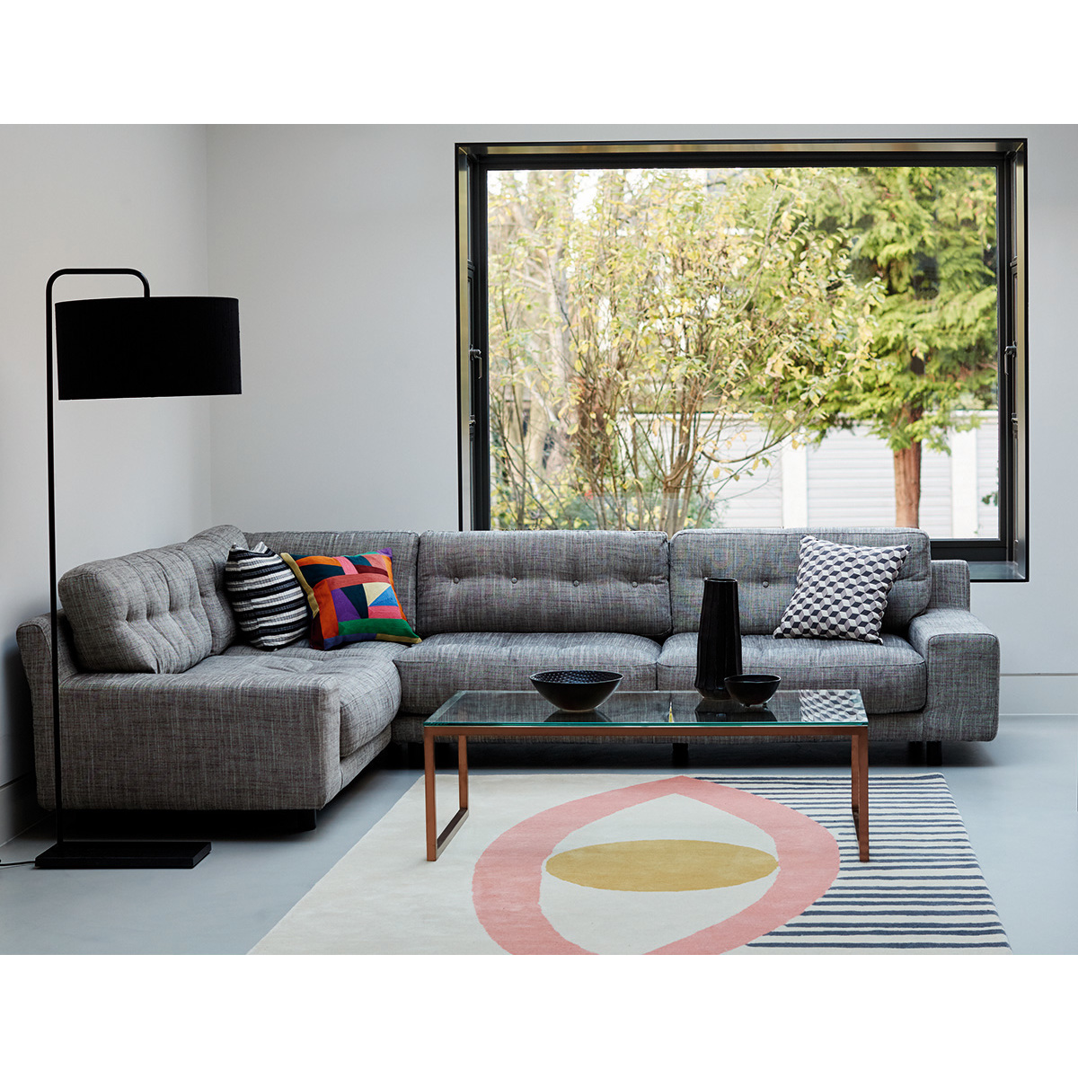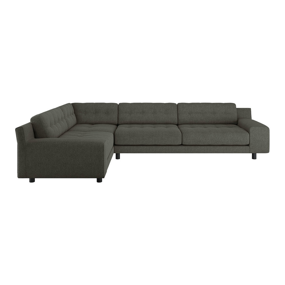 The sumptuous Hendricks charcoal fabric right arm corner sofa features low, wide arms and soft, deep feather and fibre cushions finished with button detailing. Made in Italy, this sofa has a substantial, retro-styled design and is fully upholstered with removable frame covers. Getting a sofa into your home can sometimes be a bit of a squeeze. Read our Sofa Measuring Guide to ensure your dream design is compatible with your space. Part of the Hendricks range and available in a choice of fabrics and leathers in a variety of colours and sizes.