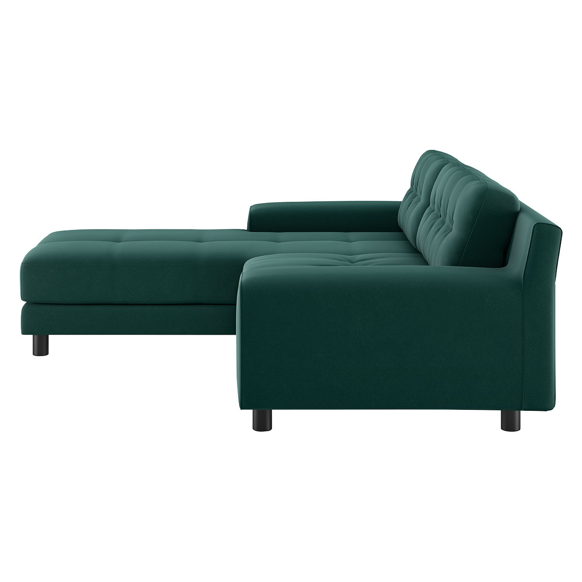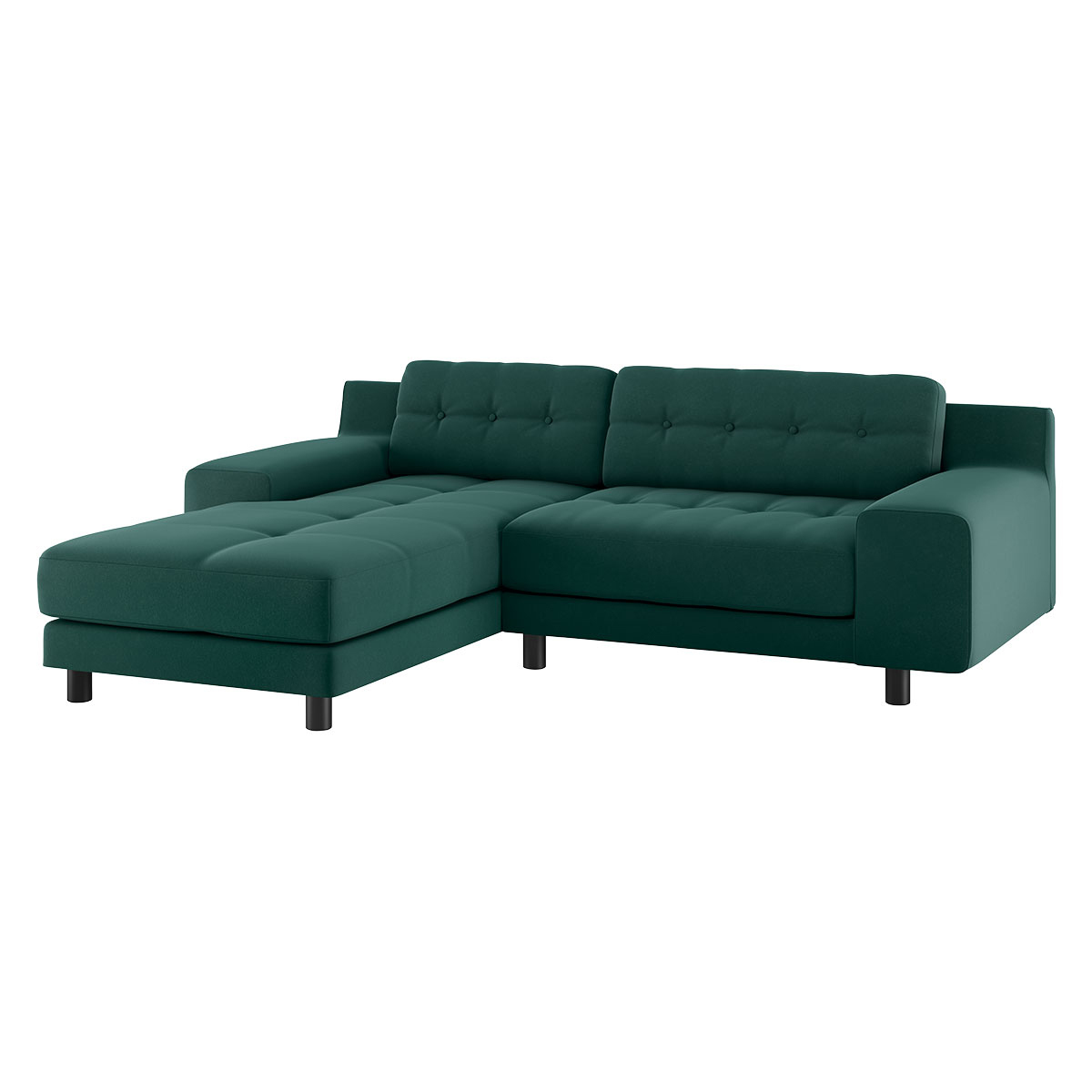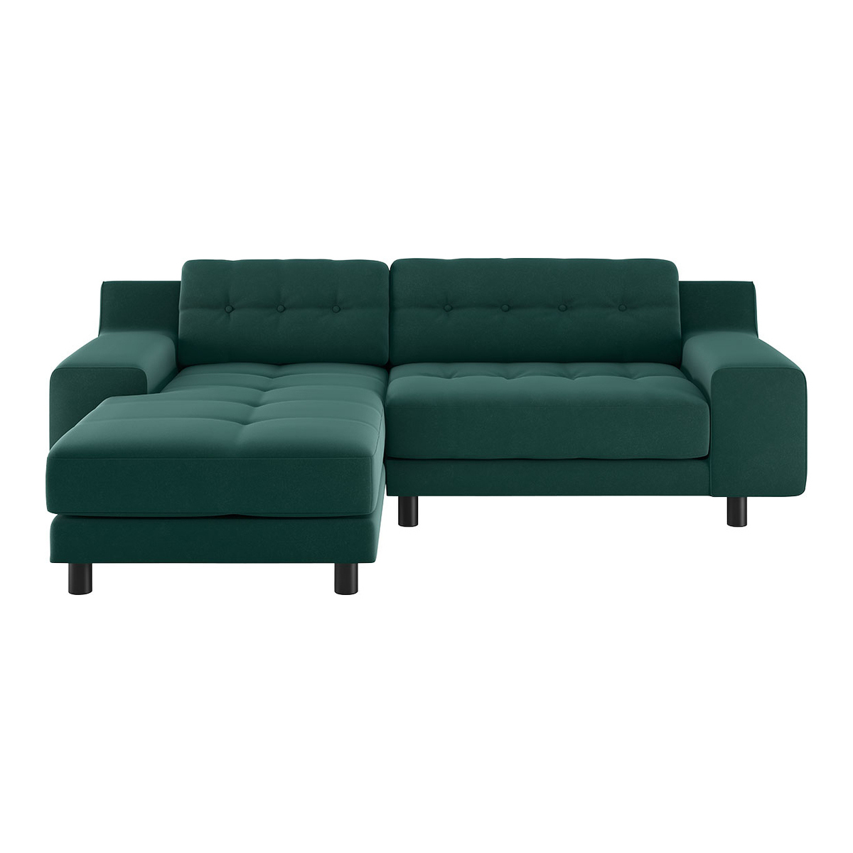 The sumptuous Hendricks emerald green velvet small left arm chaise sofa, features low, wide arms and soft, deep feather and fibre cushions finished with button detailing. Made in Italy, this sofa has a substantial, retro-styled design and is fully upholstered with removable frame covers. Getting a sofa into your home can sometimes be a bit of a squeeze. Read our Sofa Measuring Guide to ensure your dream design is compatible with your space. Part of the Hendricks range and available in a choice of fabrics and leathers in a variety of colours and sizes.