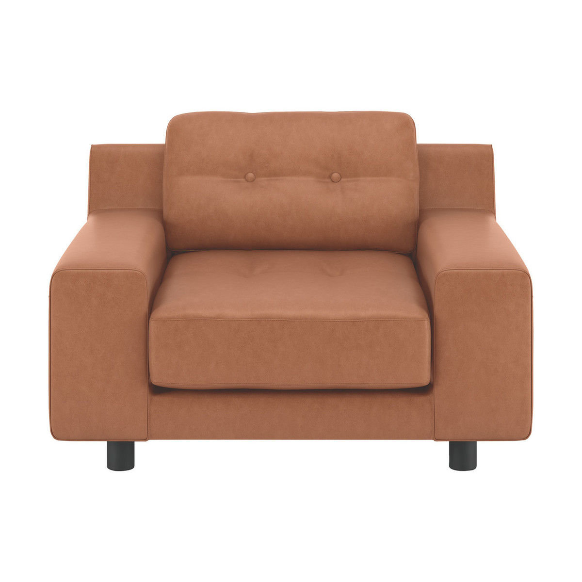 The sumptuous Hendricks tan leather armchair features low, wide arms and soft, deep feather and fibre cushions finished with button detailing. Made in Italy, this sofa has a substantial, retro-styled design and is fully upholstered with removable frame covers. Getting a sofa into your home can sometimes be a bit of a squeeze. Read our Sofa Measuring Guide to ensure your dream design is compatible with your space. The Hendricks range has a substantial, retro-styled design and available in a choice of fabrics and leathers in a variety of colours and sizes.