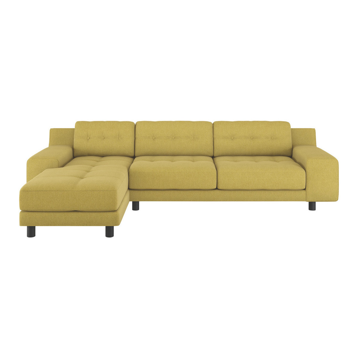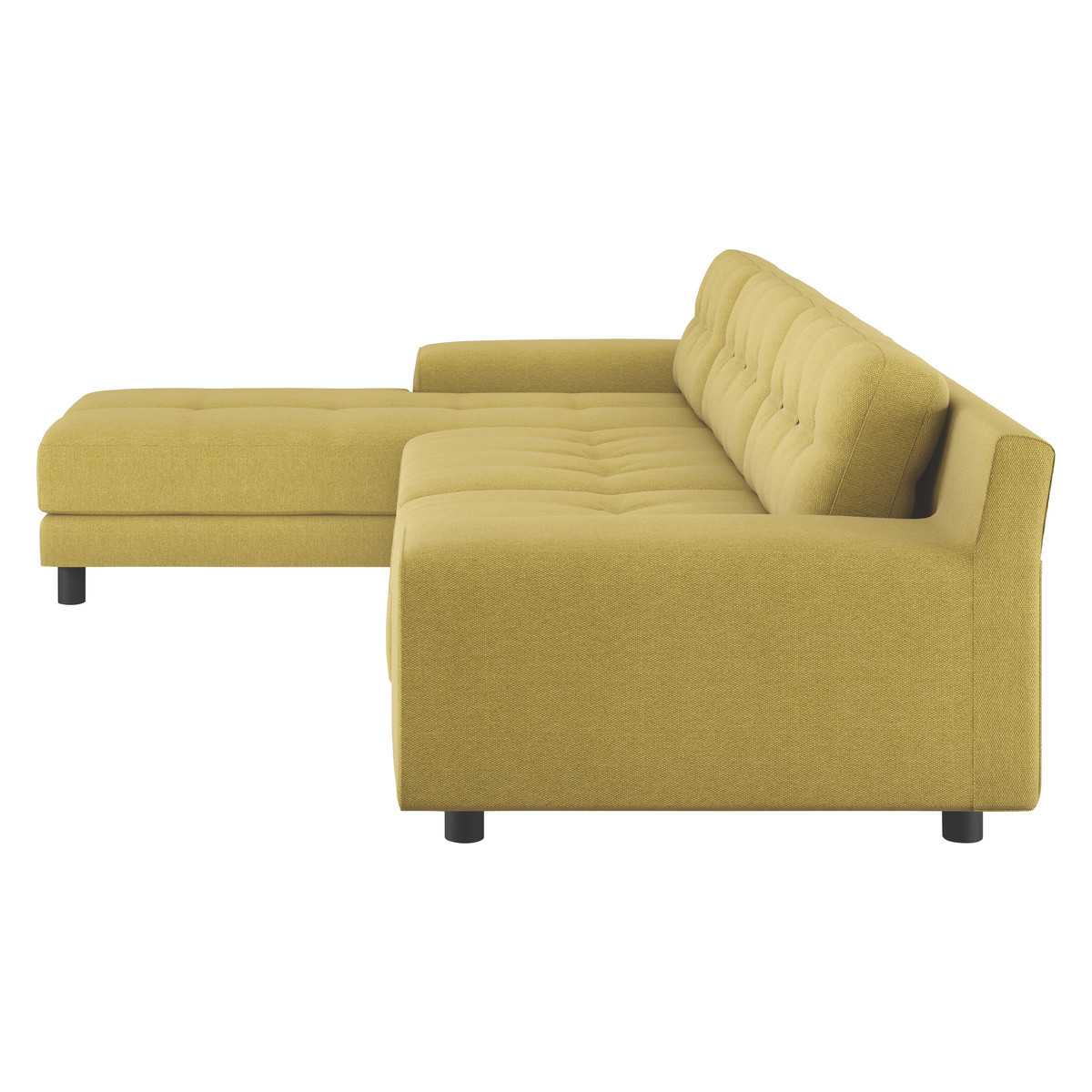The sumptuous Hendricks saffron yellow fabric left arm chaise sofa features low, wide arms and soft, deep feather and fibre cushions finished with button detailing. Made in Italy, this sofa has a substantial, retro-styled design and is fully upholstered with removable frame covers. Getting a sofa into your home can sometimes be a bit of a squeeze. Read our Sofa Measuring Guide to ensure your dream design is compatible with your space. Part of the Hendricks range and available in a choice of fabrics and leathers in a variety of colours and sizes.