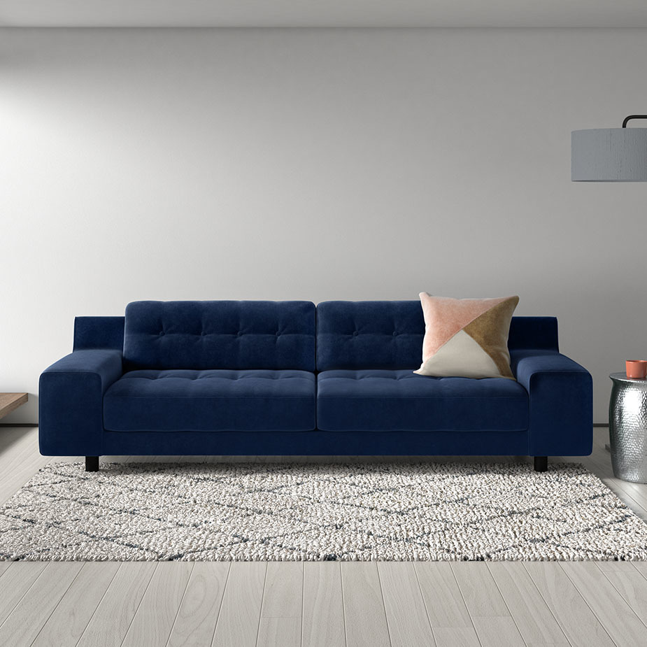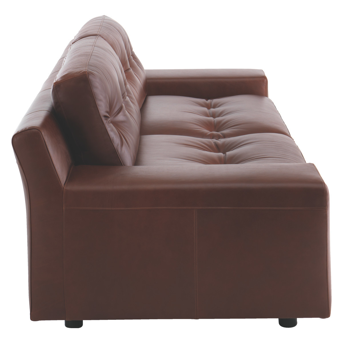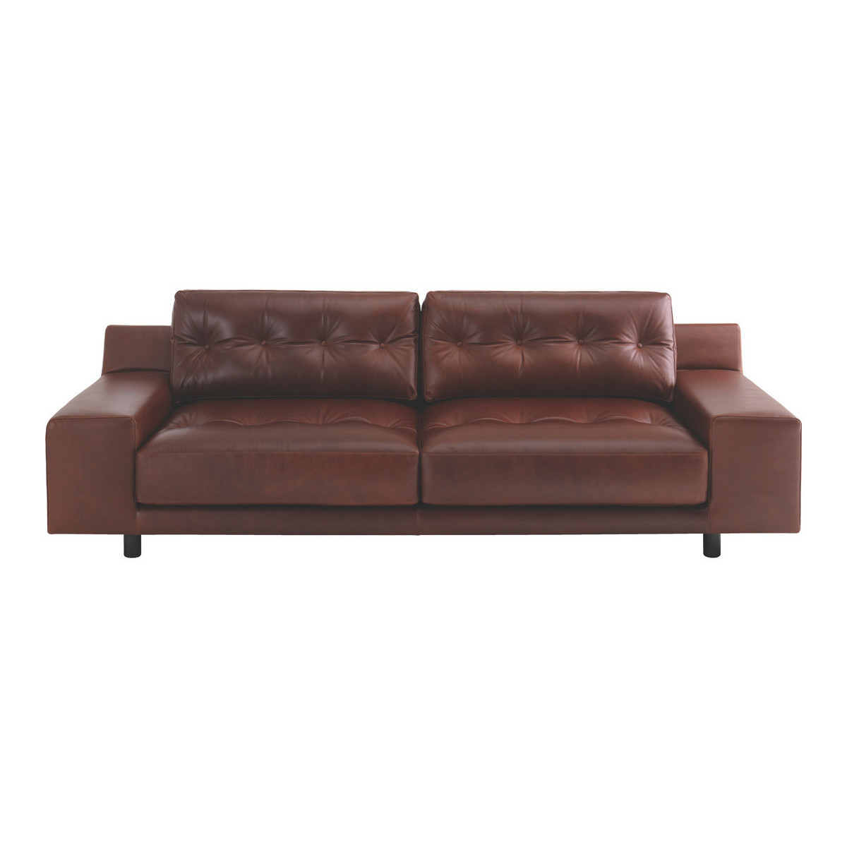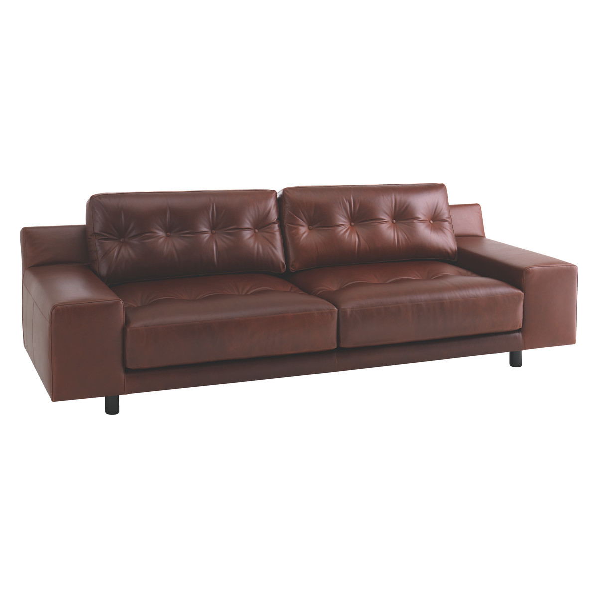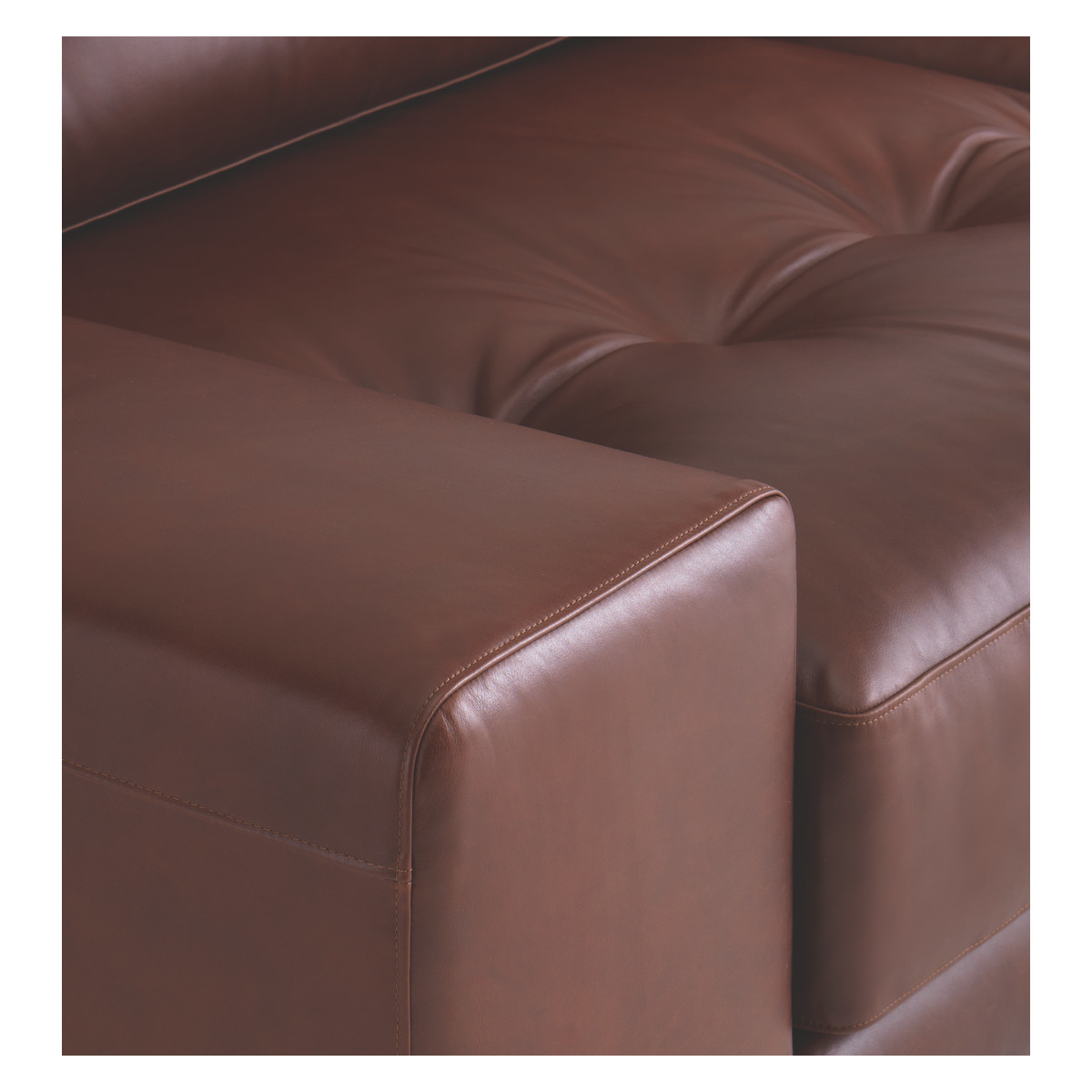 The sumptuous Hendricks tan leather 4 seater sofa features low, wide arms and soft, deep feather and fibre cushions finished with button detailing. Made in Italy, this sofa has a substantial, retro-styled design and is fully upholstered with removable frame covers. Getting a sofa into your home can sometimes be a bit of a squeeze. Read our Sofa Measuring Guide to ensure your dream design is compatible with your space. Part of the Hendricks range and available in a choice of fabrics and leathers in a variety of colours and sizes.
