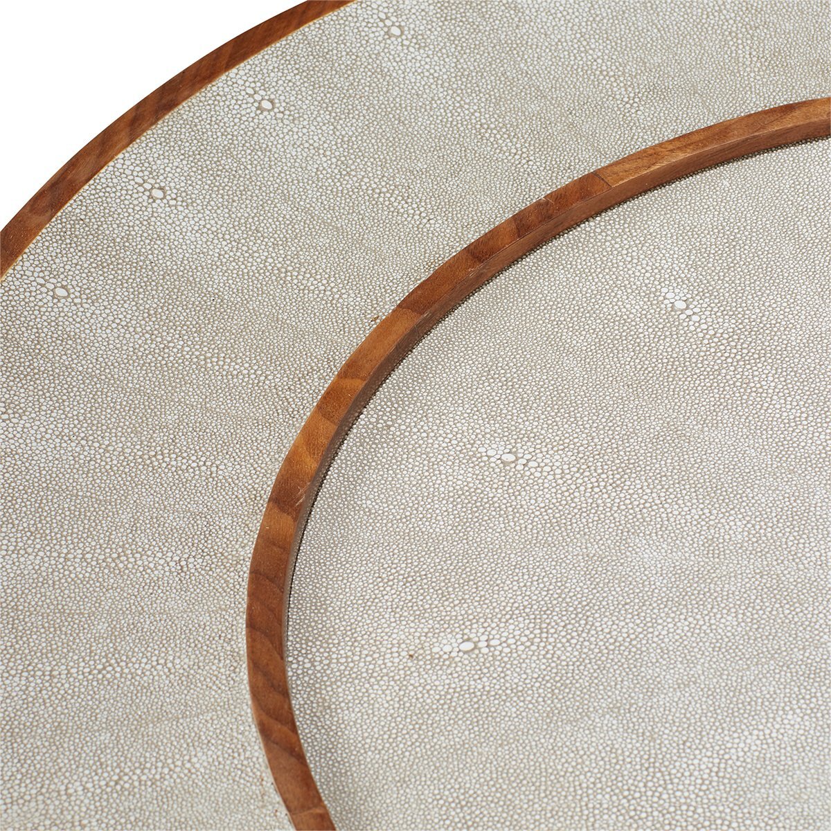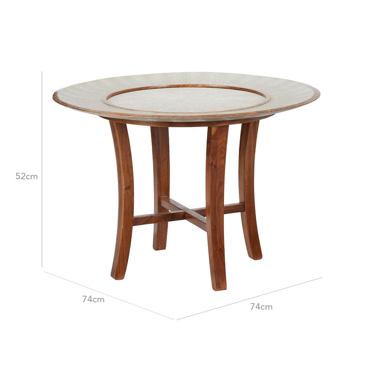 Drawing inspiration from the rounded island of Hengsha in eastern China, this small circular coffee table adds an Oriental touch to your home. This piece has an artistic feel about it, completed by its beautiful taupe faux shagreen top which is sure to catch the eye of every guest.