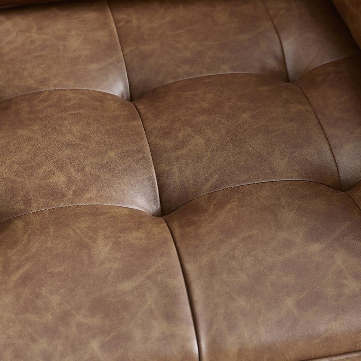 Elevate your living space with this exquisite 2 seater sofa that seamlessly blend the luxurious appeal of brown faux leather with thoughtful details like bolsters and buttons. Crafted with meticulous attention to detail, the rich brown faux leather upholstery exudes warmth and sophistication. The texture mimics the look and feel of genuine leather, providing a luxurious touch that enhances the overall aesthetic of your living room.