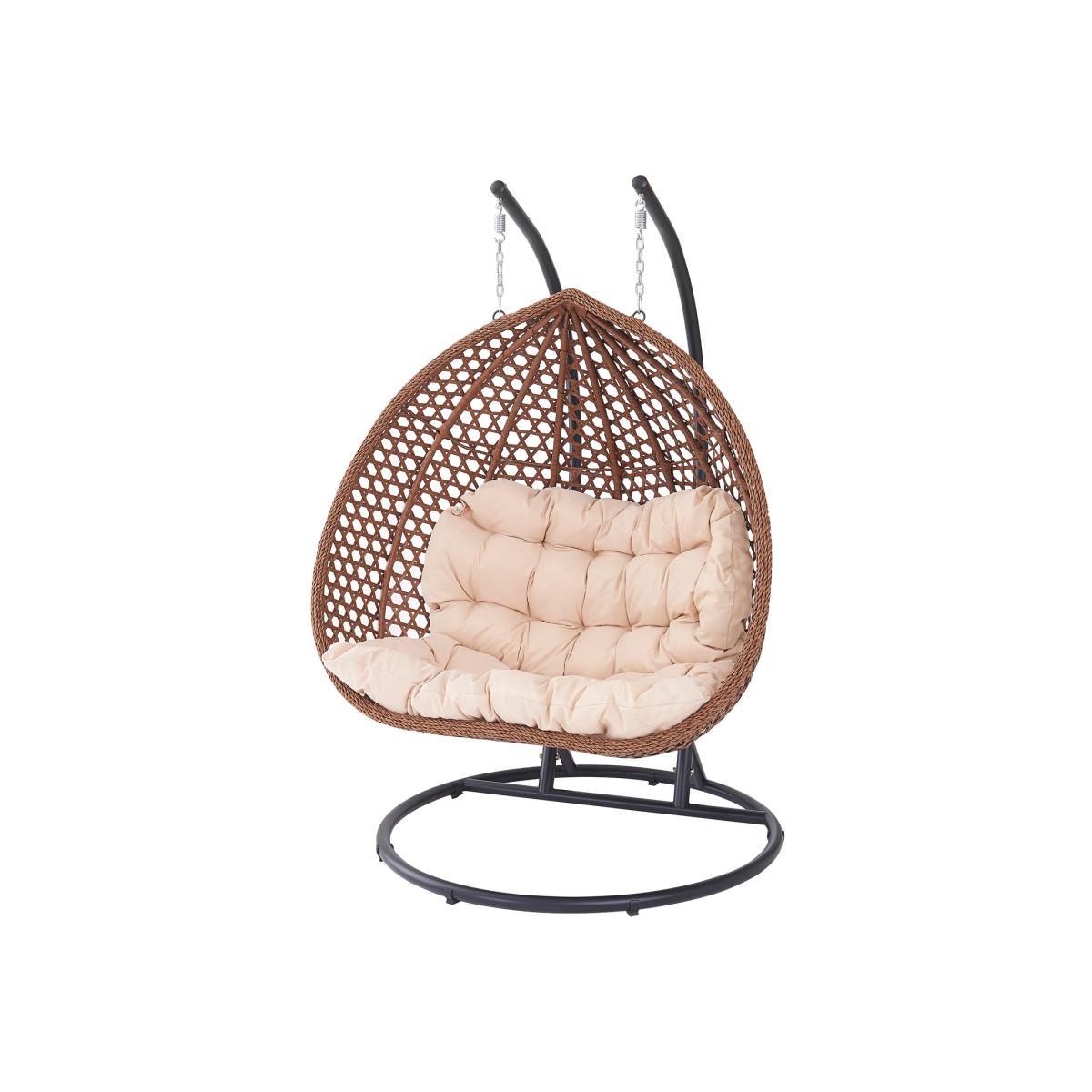 Relax in ultimate comfort with the Henley Double Outdoor Swinging Egg Chair, the perfect statement piece for any garden or patio. Designed for two, this luxurious outdoor garden swing lets you unwind and read your favourite book in style. The durable rattan-effect hanging basket is supported by a solid, powder-coated metal frame, ensuring long-lasting stability. With a spring-supported hanging basket for a smooth, gentle motion, this chair offers a soothing escape. The soft, fibre-filled seat cushion is water-resistant, providing both comfort and practicality. Tested to a 150kg user weight limit, the Henley Swing Chair combines durability, elegance, and relaxation for the perfect outdoor retreat. Dimensions Total Height 181cm. Basket Height 131cm. Width 122cm. Depth 72cm