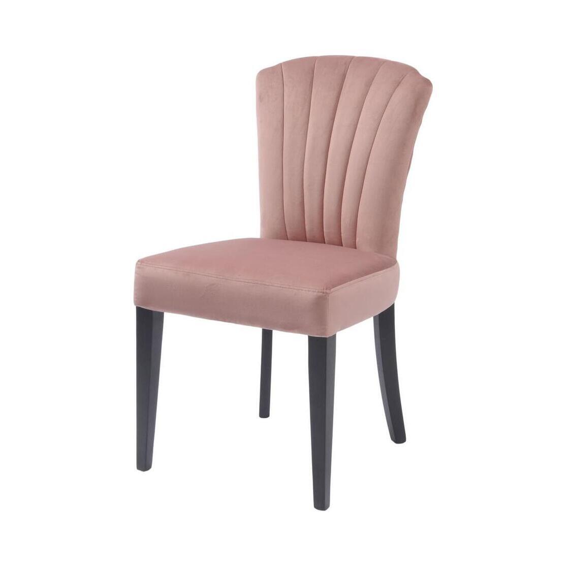 This pretty light pink velvet dining chair features a distinctive shell back and contrasting dark wood legs. Perfect for a formal dining space or contemporary kitchen, this elegant upholstered design brings with it a sense of understated luxury. Shown here in a soft pink colourway, this contemporary chair design will add decorative detail to your dining room.