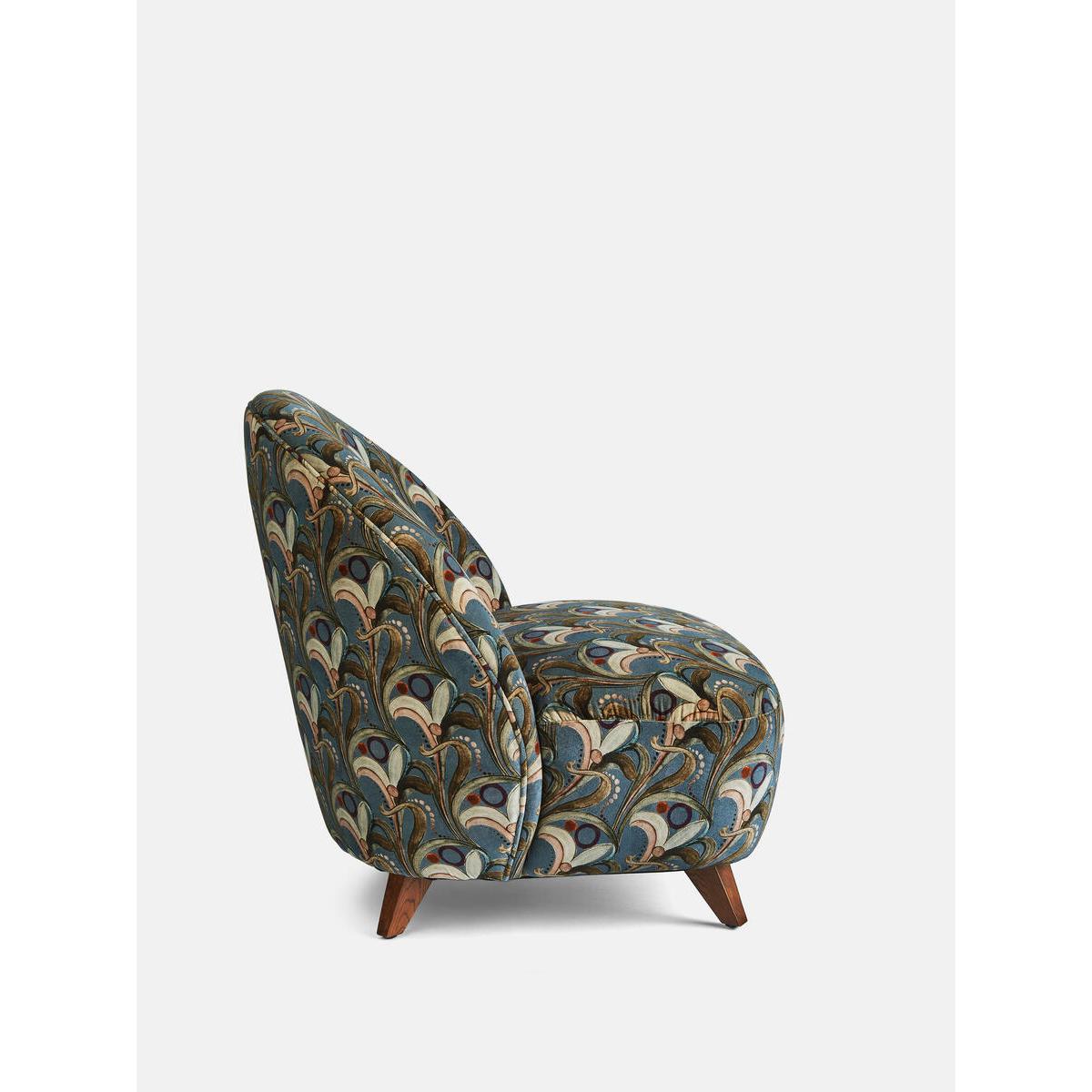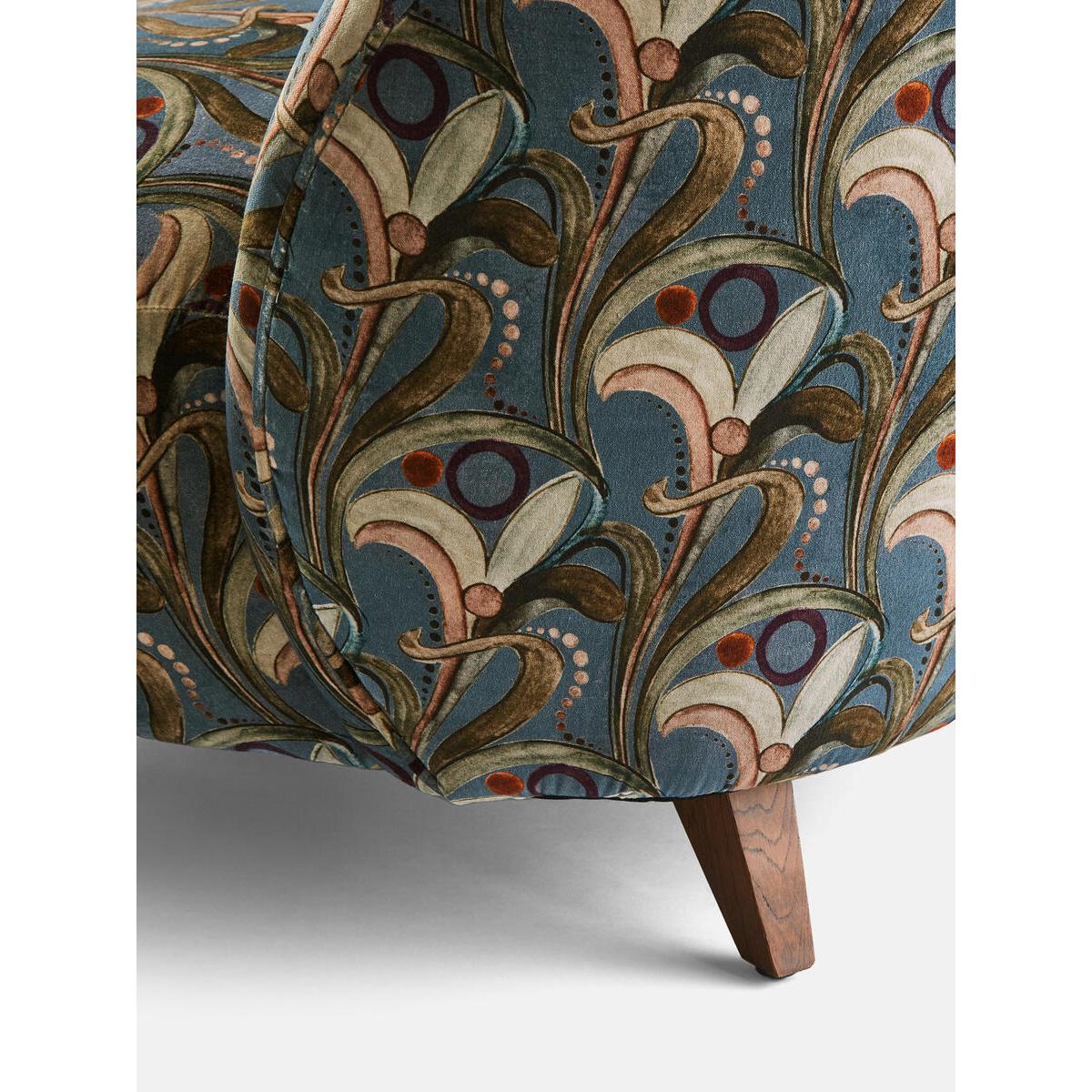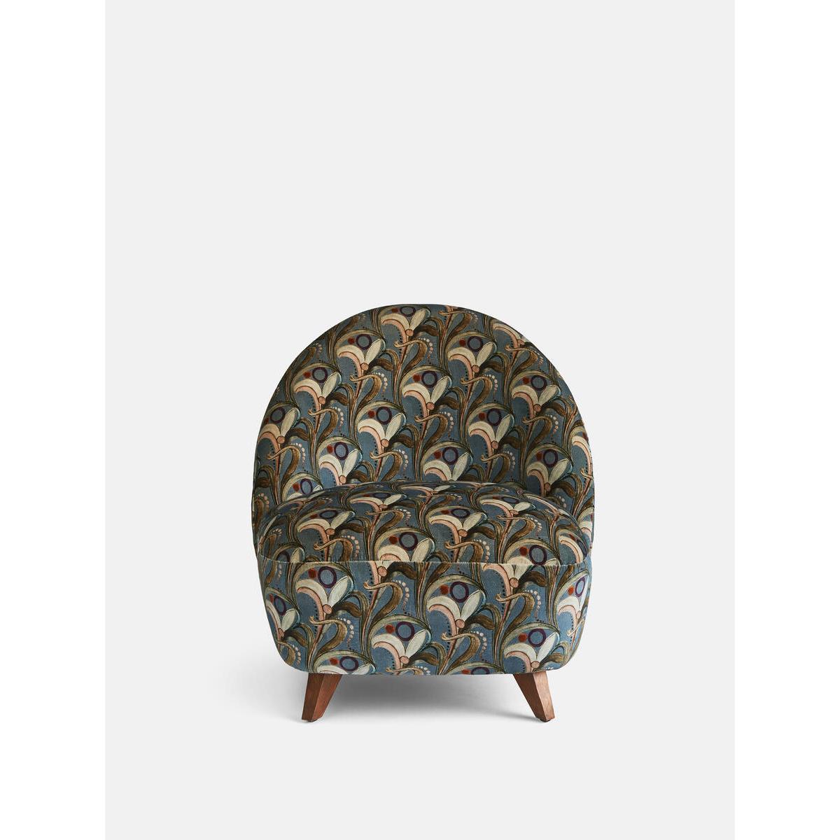 Taking its cues from the classic styles at Soho House 76 Dean Street, the Henri armchair is upholstered in a durable cotton velvet with our Obie print - originally hand-painted in-house using watercolours to depict abstract Art Nouveau-style floral motifs. The chair has a snug, fixed seat with contrasting mid-tone oak legs - a compact and comfy design that makes a great accent piece for dining and living rooms, as well as reading nooks and bedrooms. Mid-tone oak feet Upholstered in cotton velvet Armless Fixed seat Inspired by Soho House 76 Dean Street