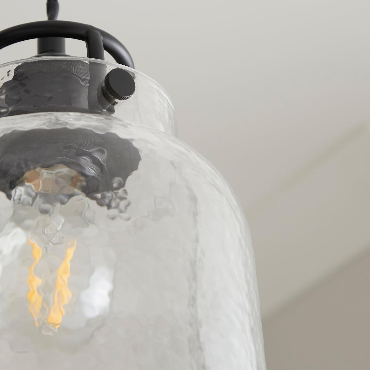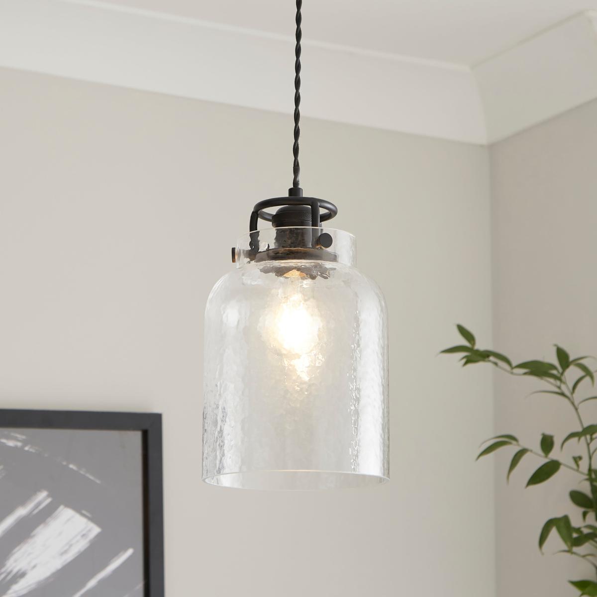* Industrial-Inspired Design* Mottled-Effect Glass Shade* Easy Fit - No Electrician Required Industrial in design, this pendant shade features a mottled glass shade and is ideal for injecting a flair of modern country to your home.