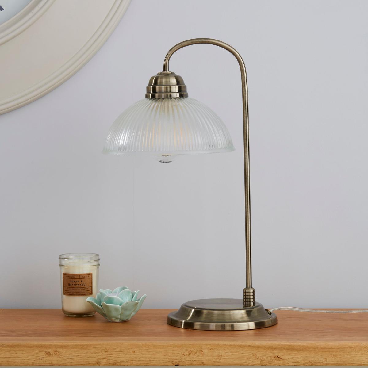 I love this lamp for its classic antique brass finish, which adds a touch of warm elegance to both traditional and eclectic interiors. It works particularly well in living rooms, bedrooms, or study areas where a cosy, ambient light is desired. The ribbed glass shade softens the glow for a welcoming atmosphere, and the adjustable arm makes it practical on bedsides or desks. For styling, consider pairing it with vintage accessories or placing it on a wooden or brass-tone surface to highlight its metallic finish. It’s versatile enough to complement both heritage-inspired and modern spaces, adding a subtle sense of timeless charm.