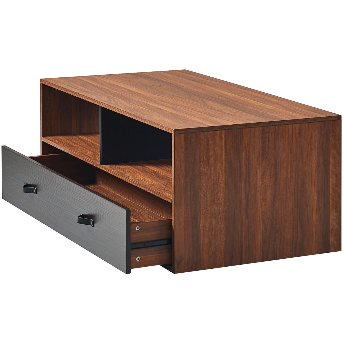 The Teamson Home Henry modern rectangular coffee table with storage and drawers in walnut is unbelievably beautiful. Clean, textured design meets modern style in this attractive coffee table. Whether youre looking for an understated decoration for your Living room or bringing an aesthetic and tasteful item of furniture into your room, this coffee table is complete with storage. This mid-century coffee table features a rectangular design complete with a contrasting bottom drawer face and faux leather handles for an elegant addition to your indoor space. With 2 open shelves and a large bottom drawer under the table's surface, this table provides extra storage for magazines, table books, remotes, and more for easy organisation. Constructed from durable and eco-friendly wood, this coffee table is stain and scratch resistant with easy-to-clean surfaces that make wiping up every day spills a breeze.